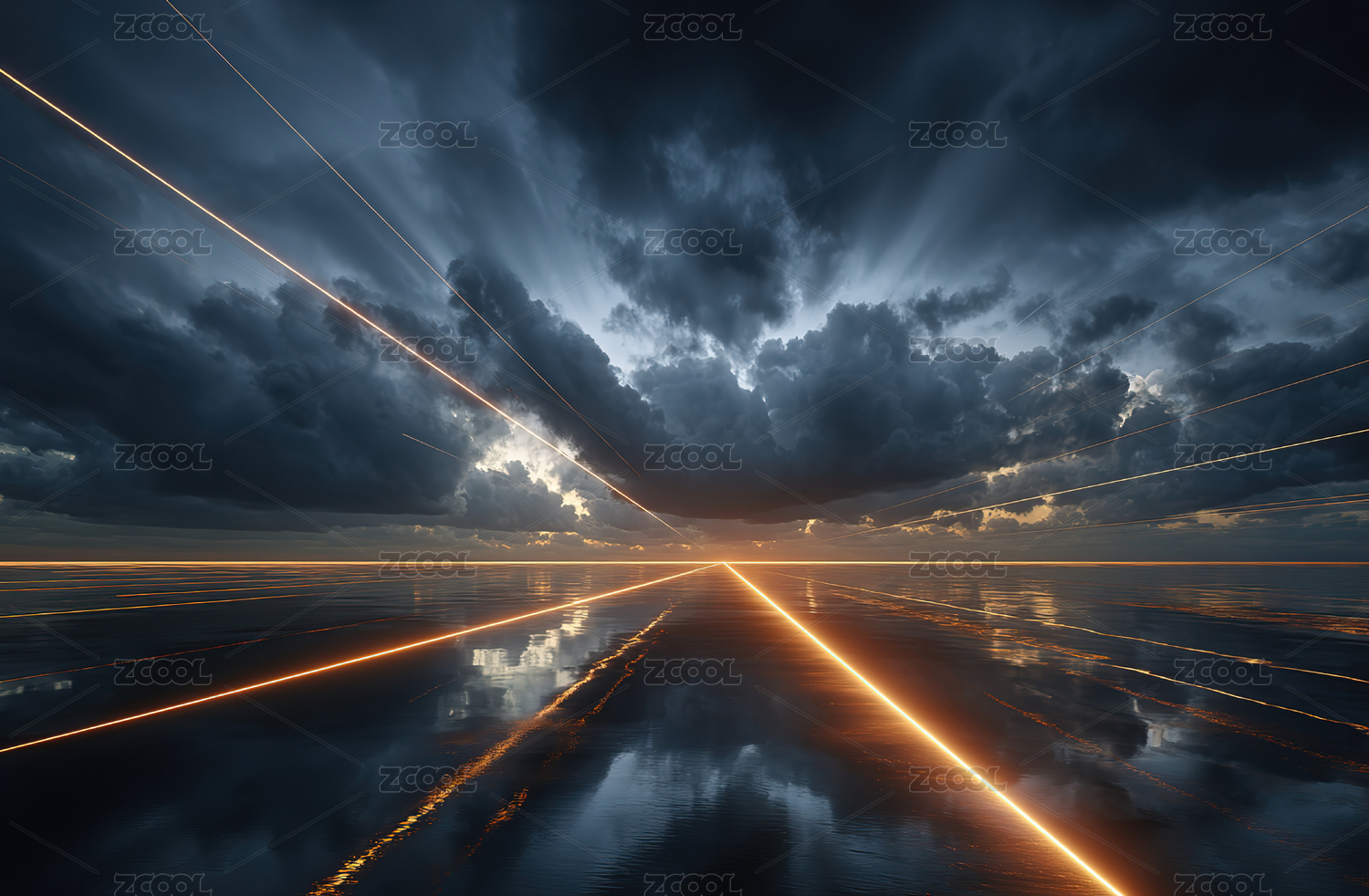 夜空下的光轨与水面倒影