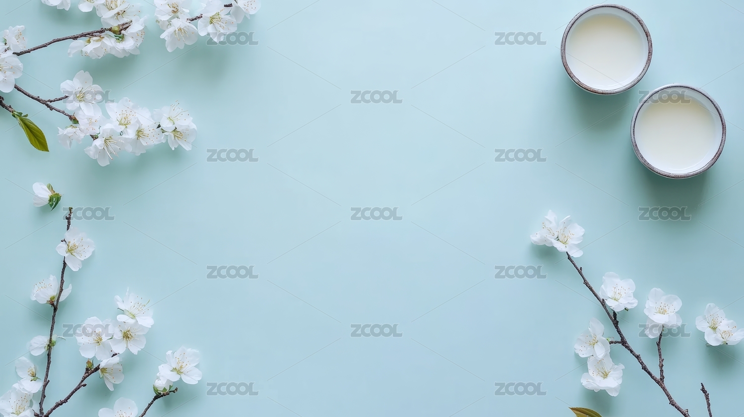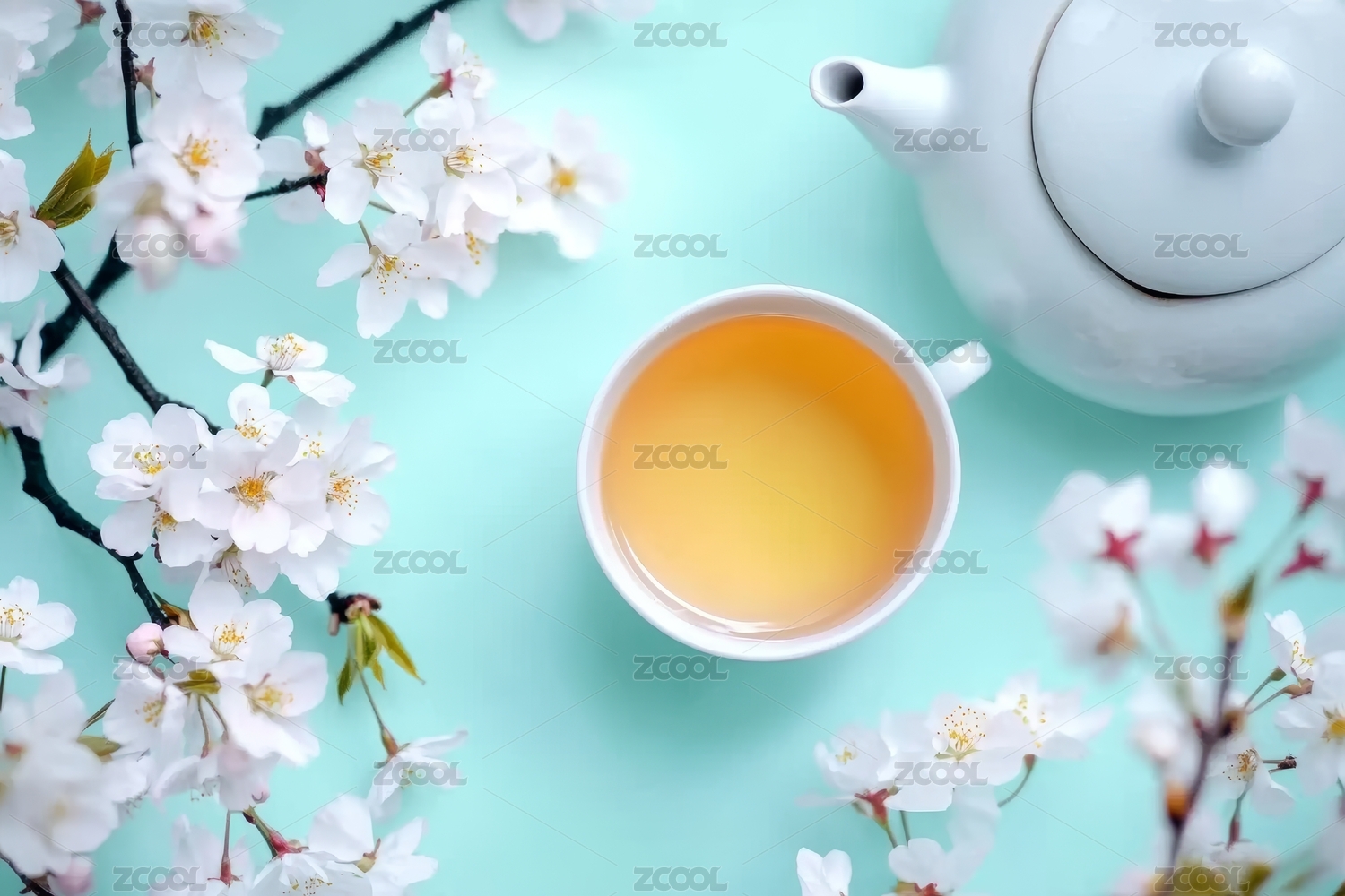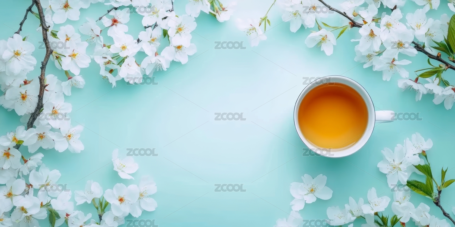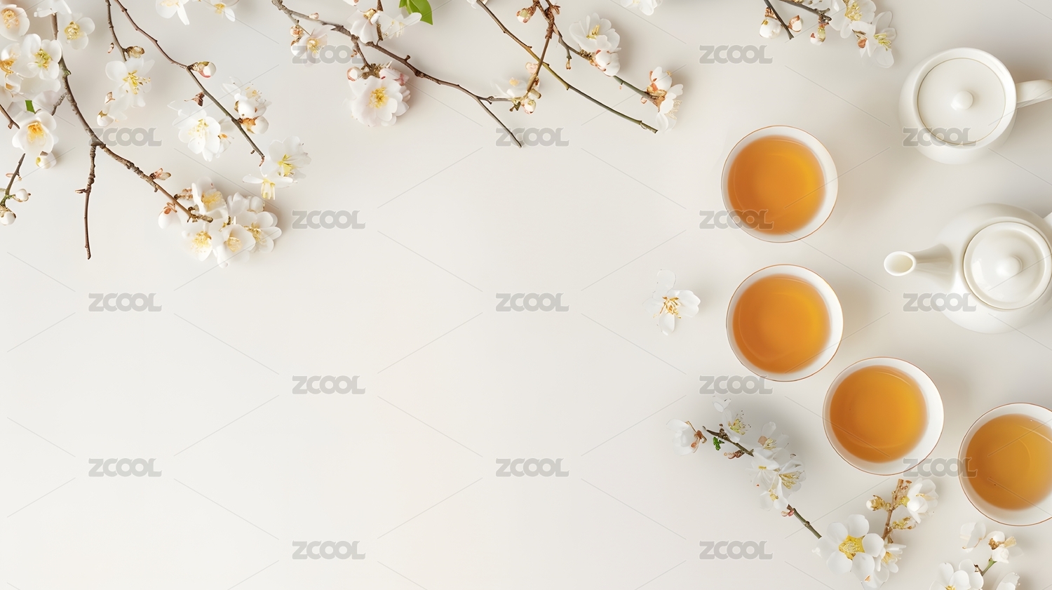 主视觉,场景,背景,清新,花朵,白色,淡雅,茶具,茶歇,展示