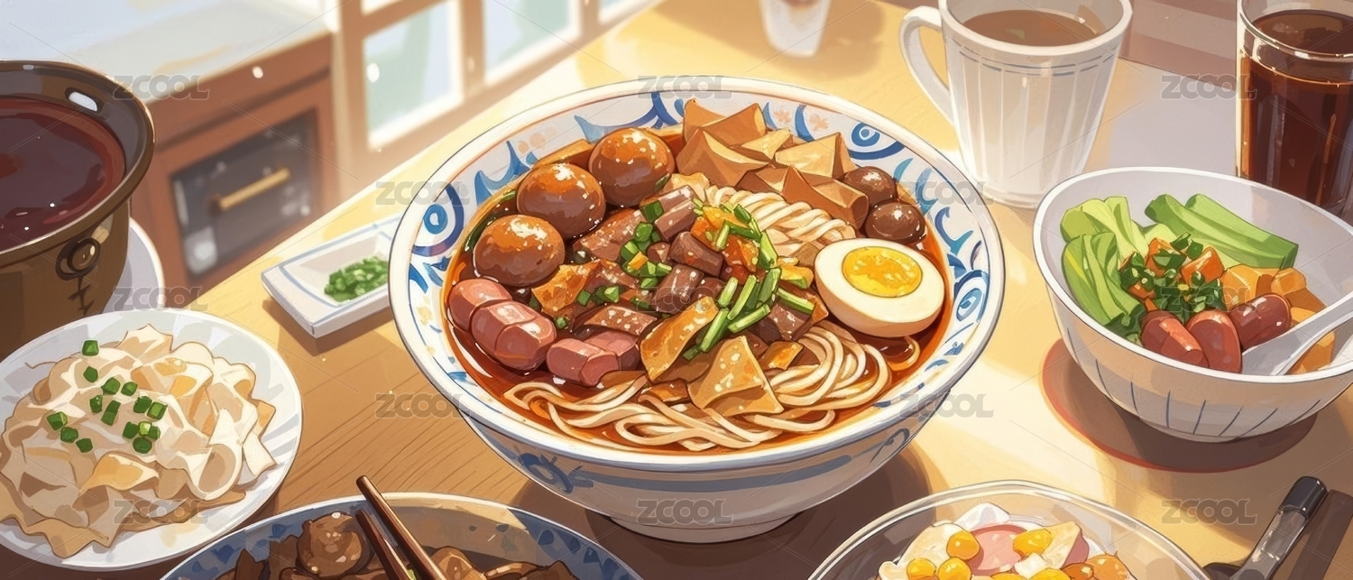 主视觉,场景,创意,艺术,设计,元素,风格,插画,日式,拉面