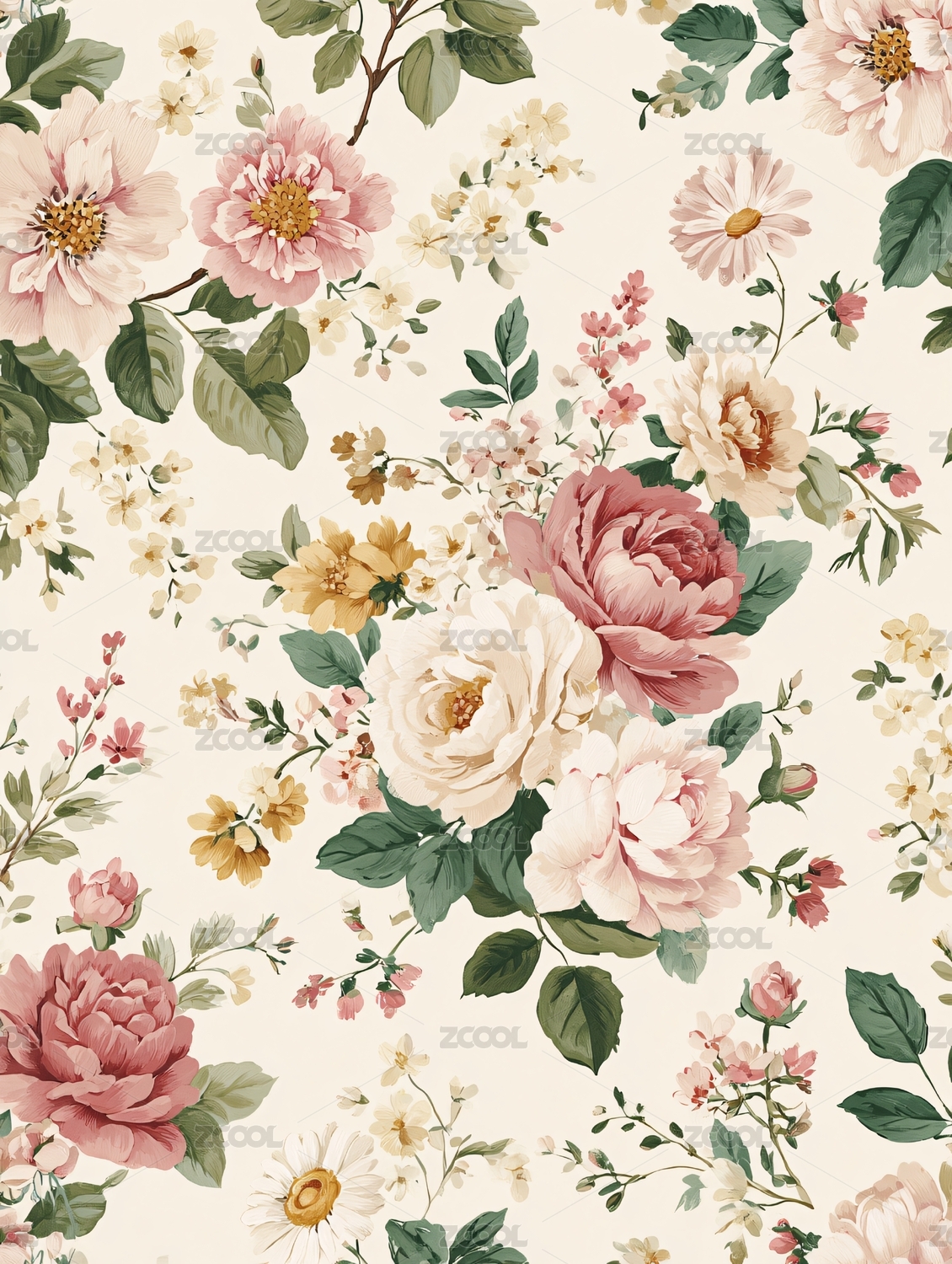 淡彩油画风格花卉图案背景