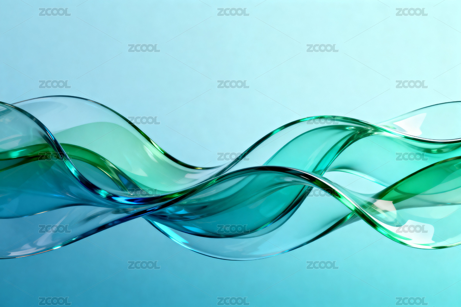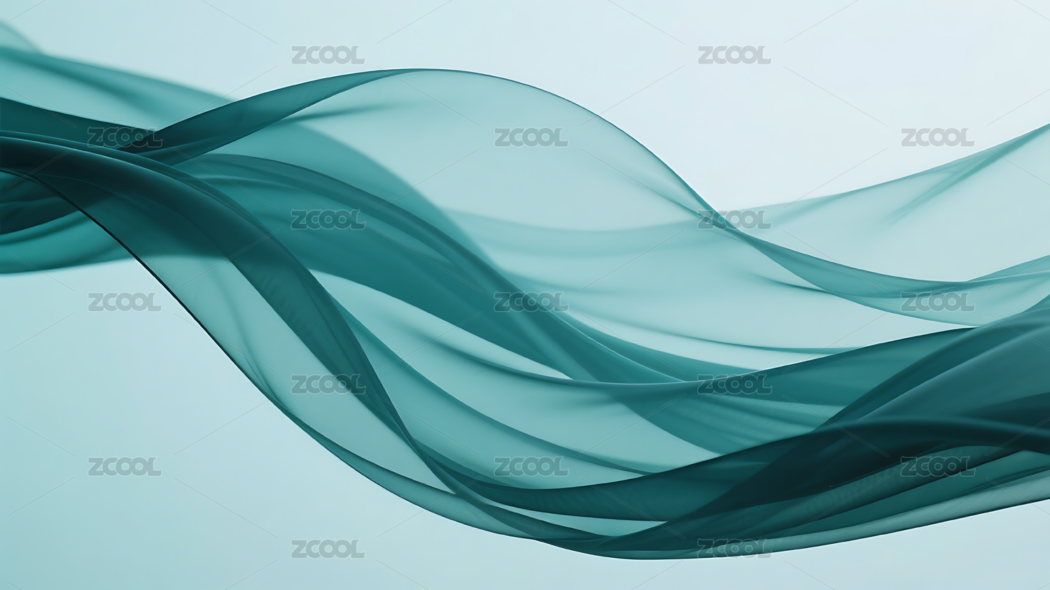 蓝绿色抽象流动柔和的丝绸曲线背景