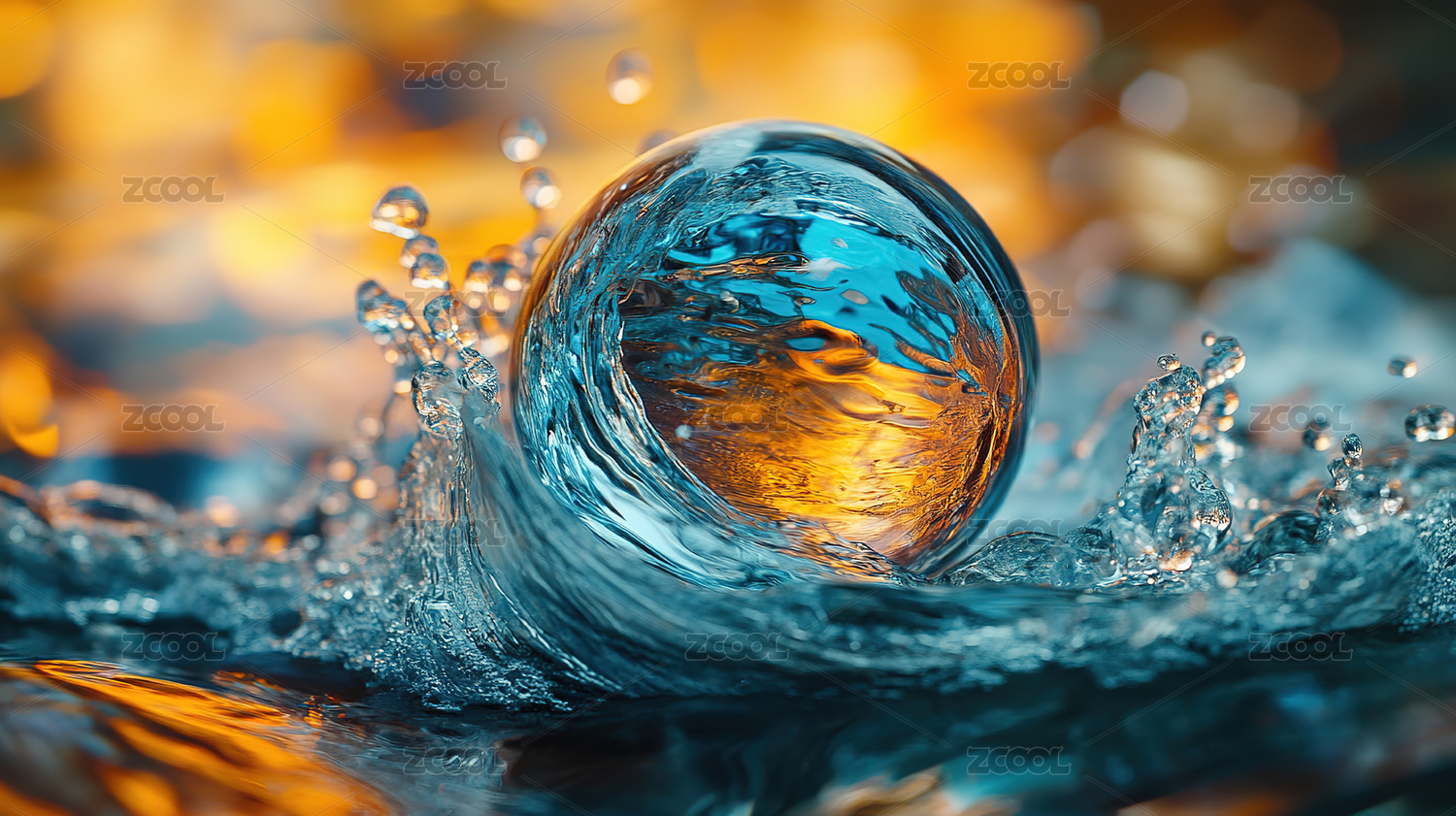 3D水面黄色水滴背景