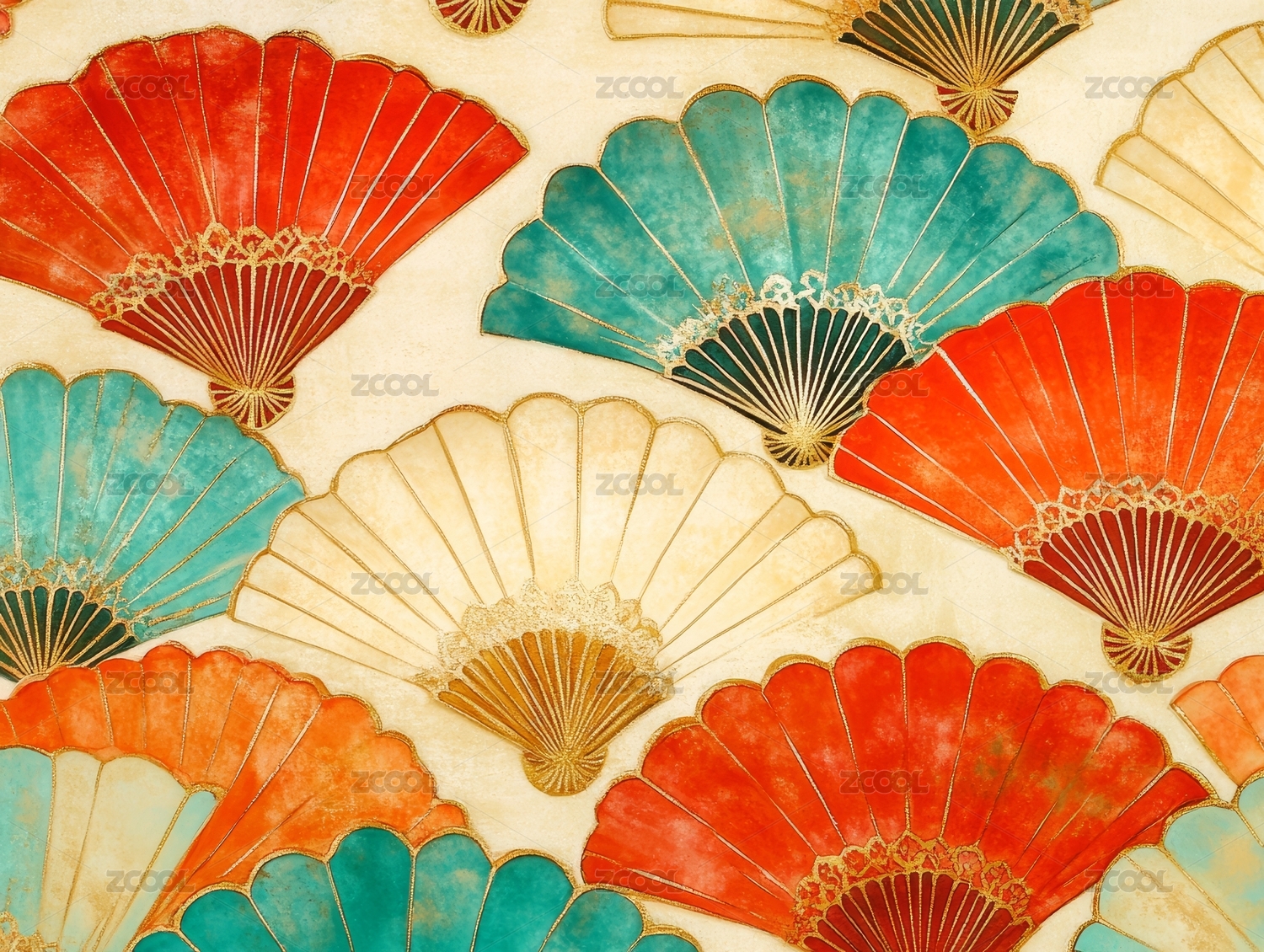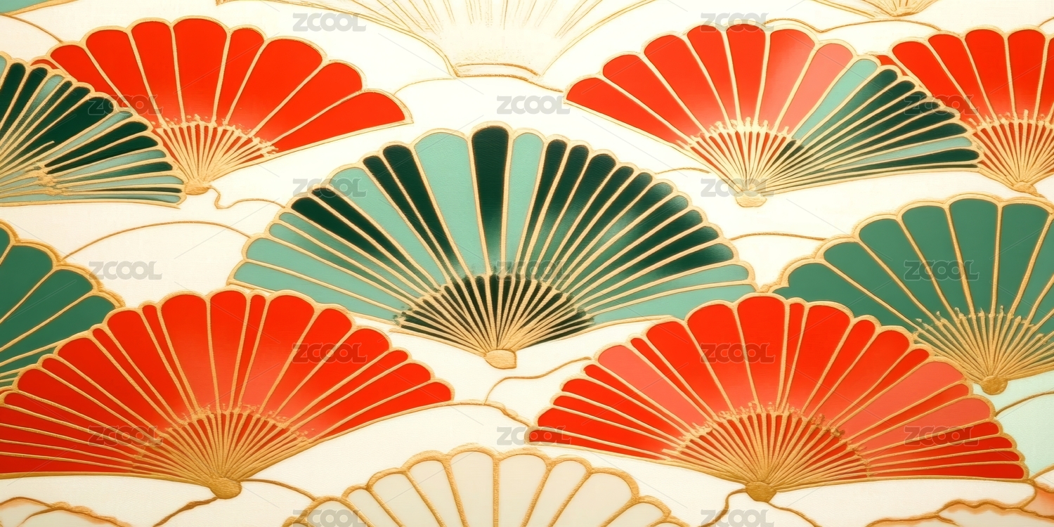 红金色东方扇形图案纹理海报背景