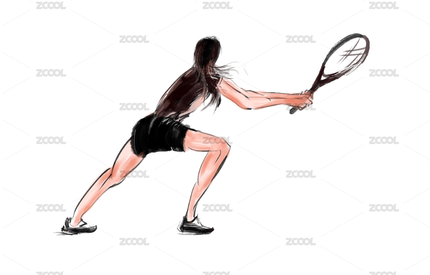中国水墨笔触表现的体育网球形象