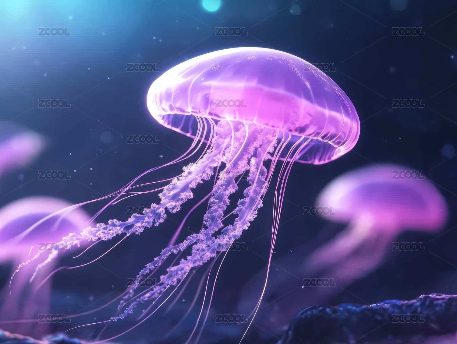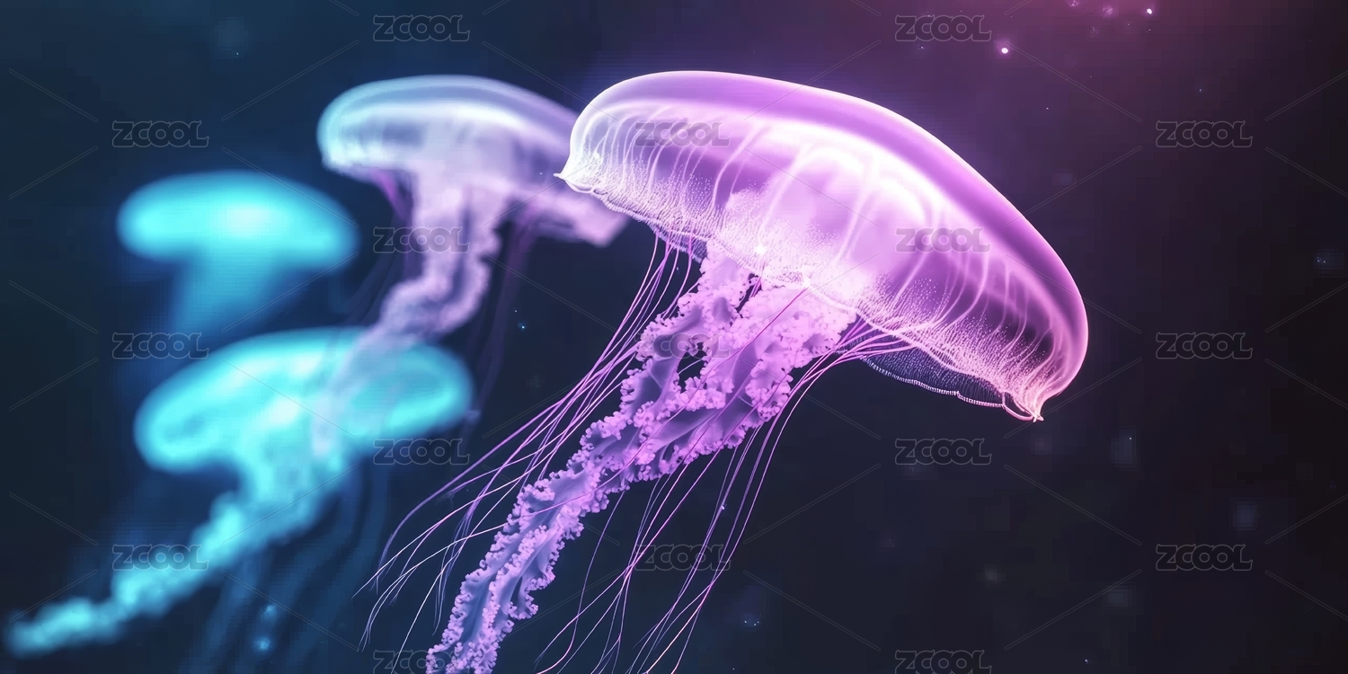 梦幻唯美插画海底里的精灵水母星星概念插图