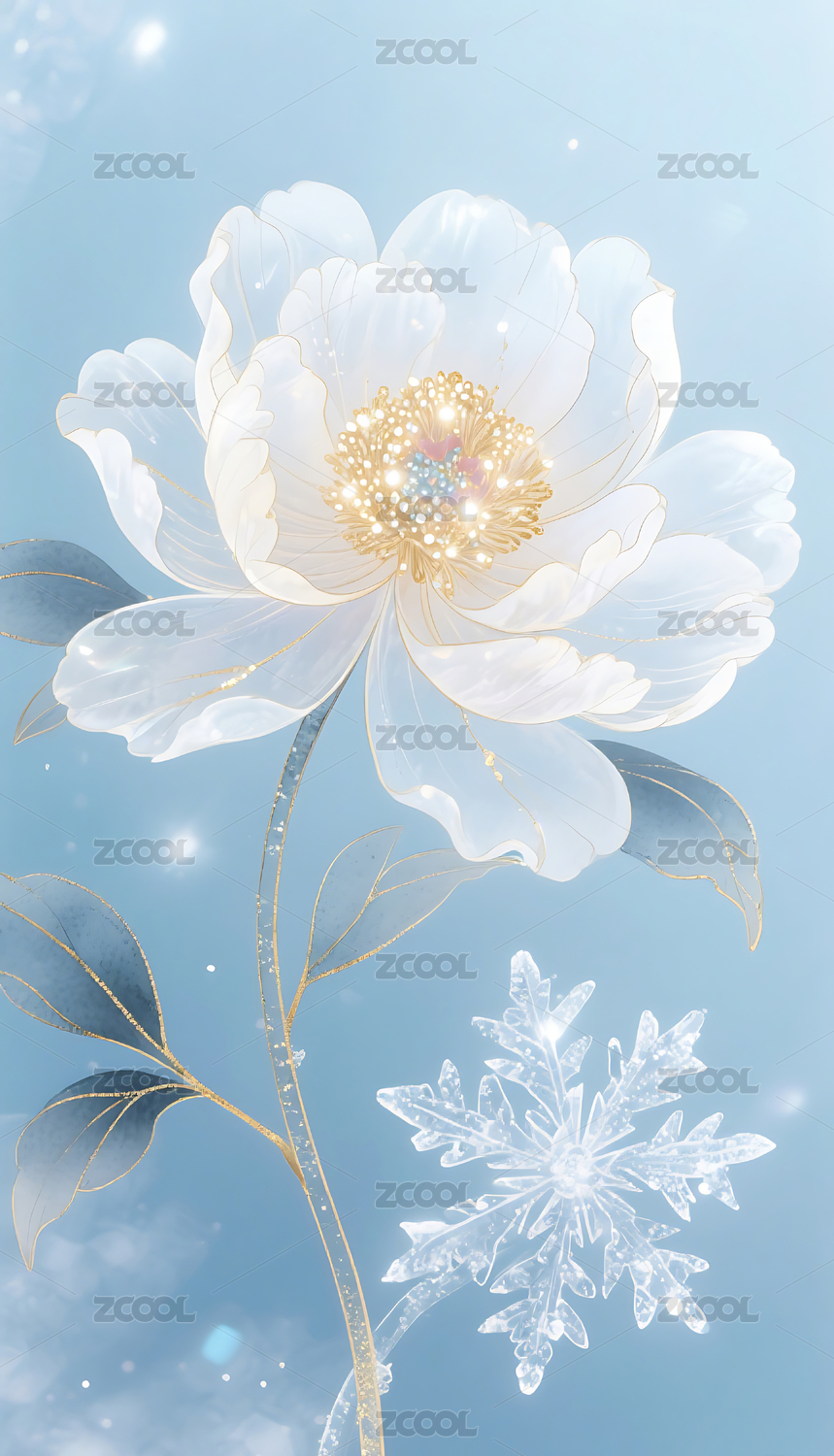 白牡丹梦幻插画装饰场景