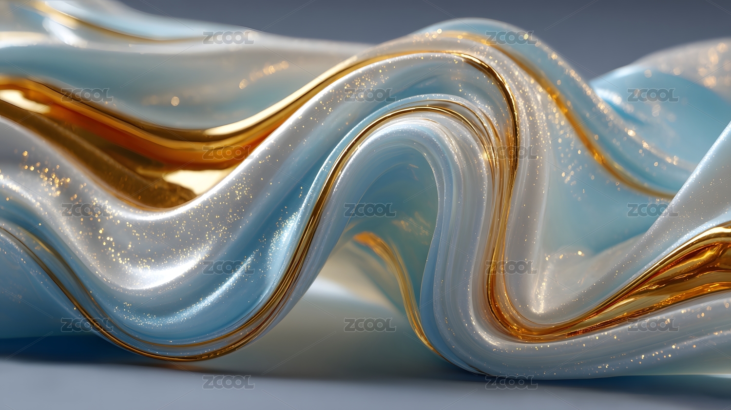 流动的金色与透明波浪艺术