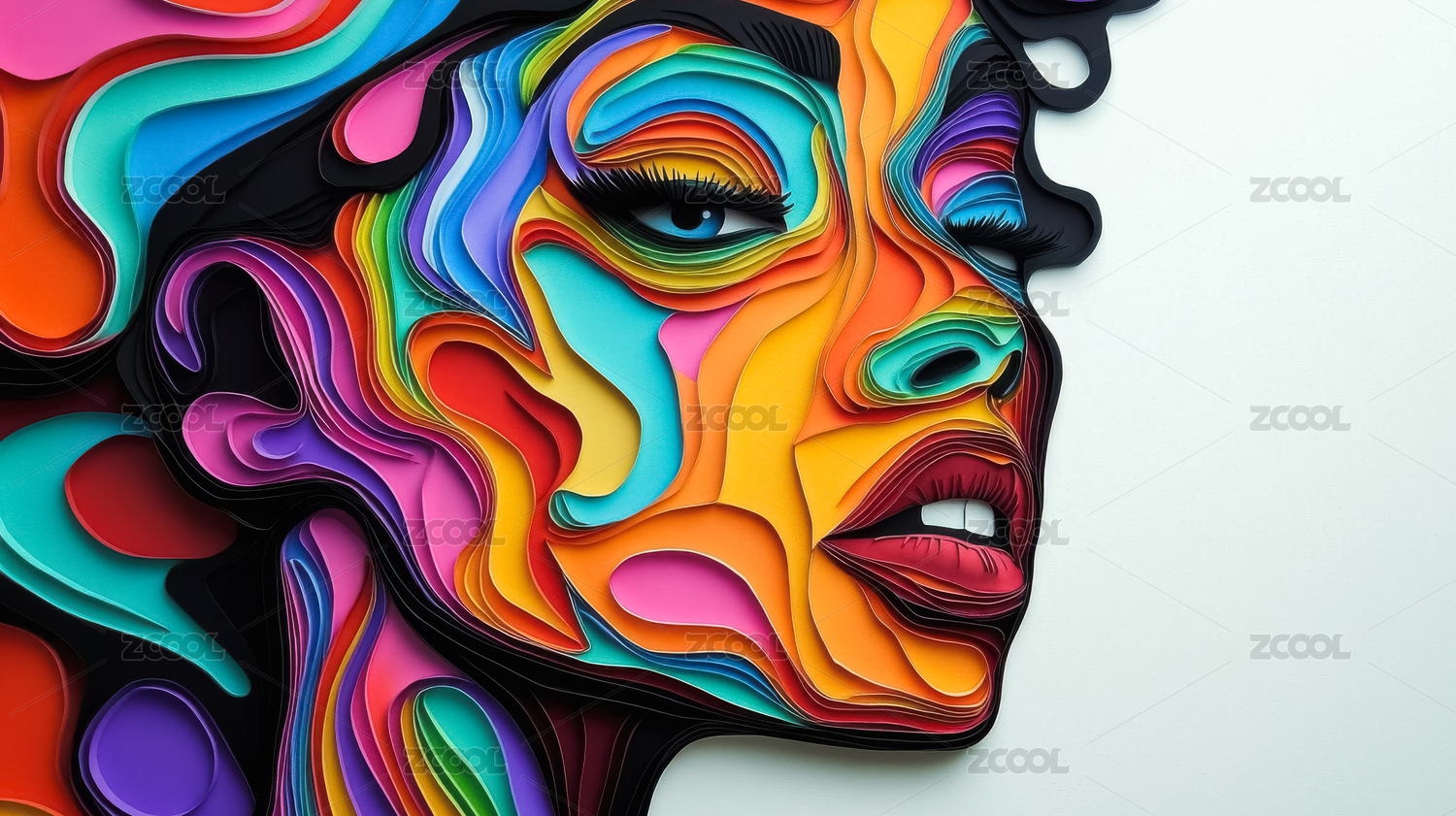 彩色浅浮雕牛奶液体颜料女性3D立体头像