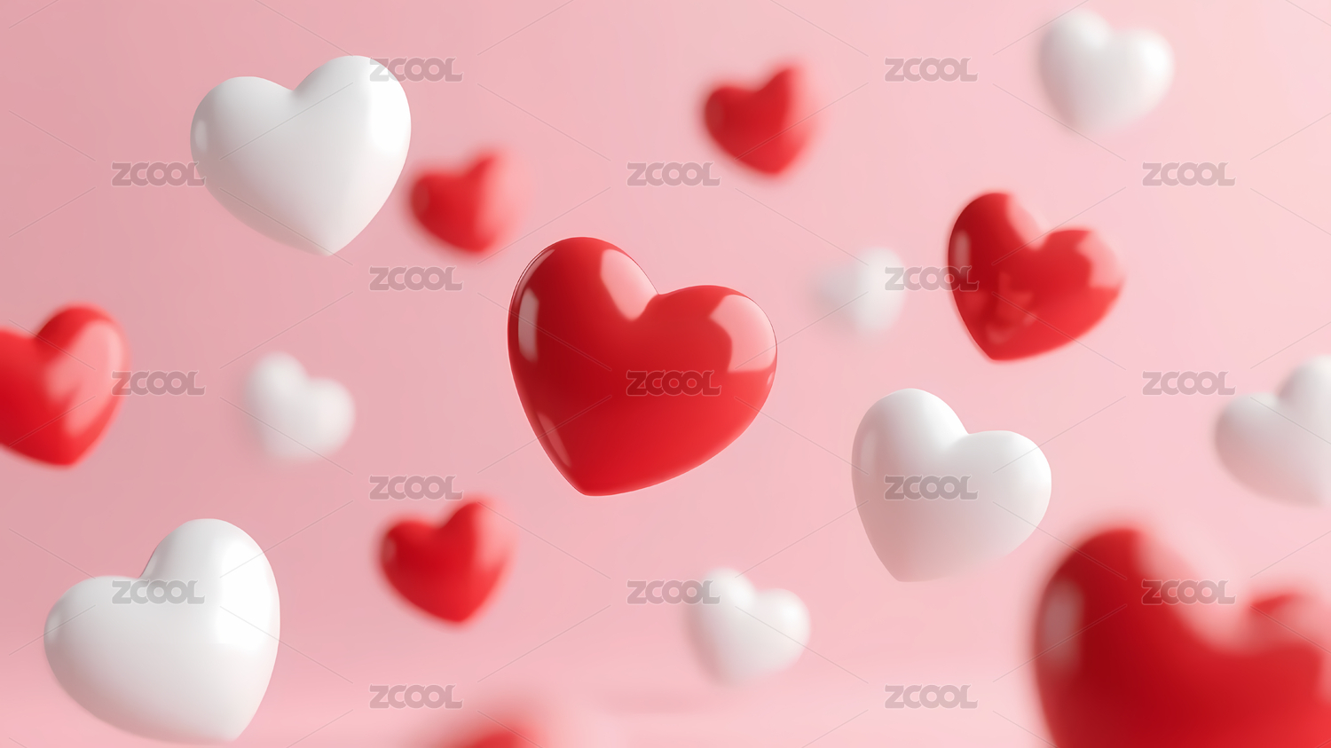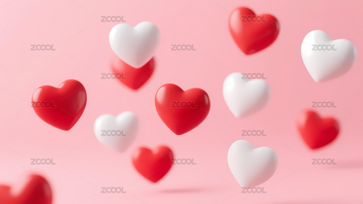 多个红白爱心漂浮粉色背景