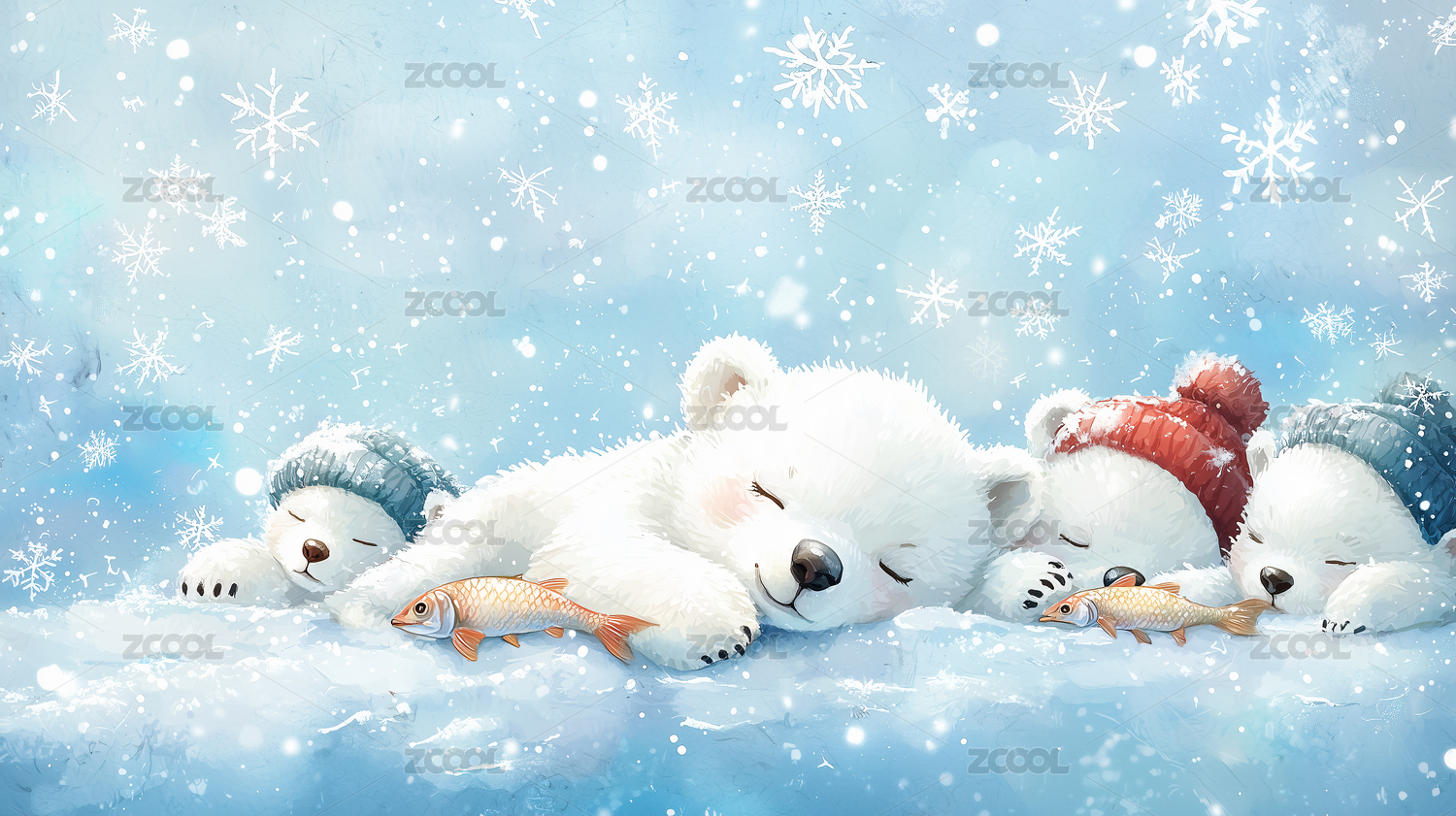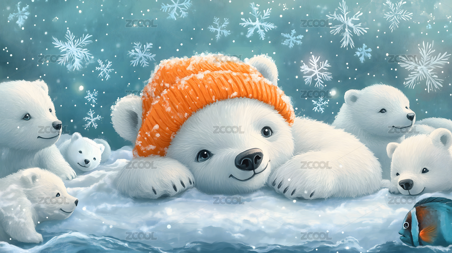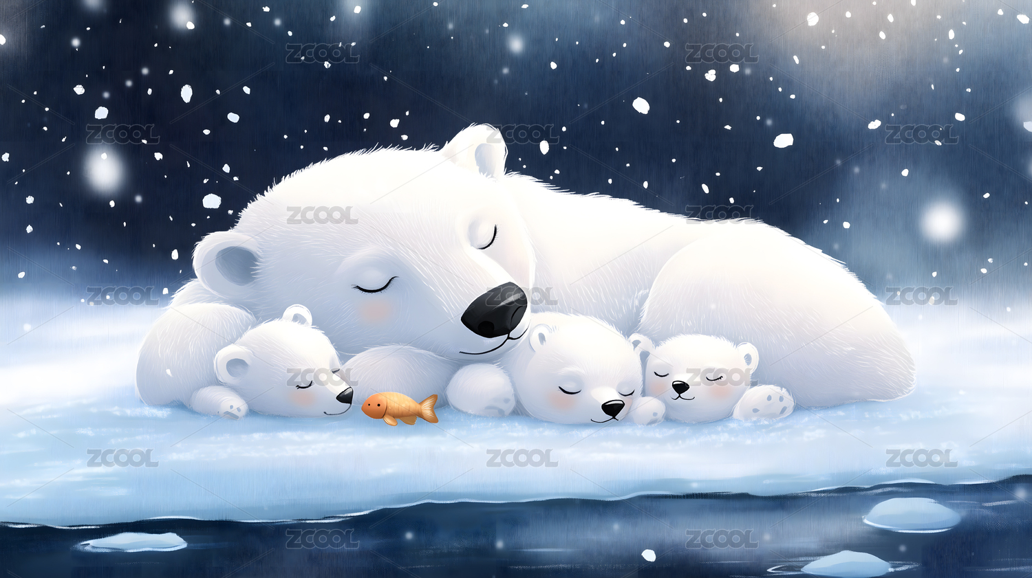 北极熊可爱唯美野生动物3D卡通插画壁纸