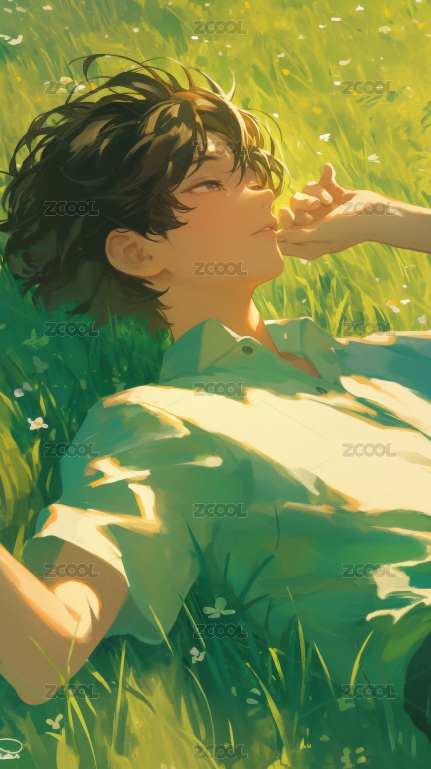 草地上的少年仰望天空