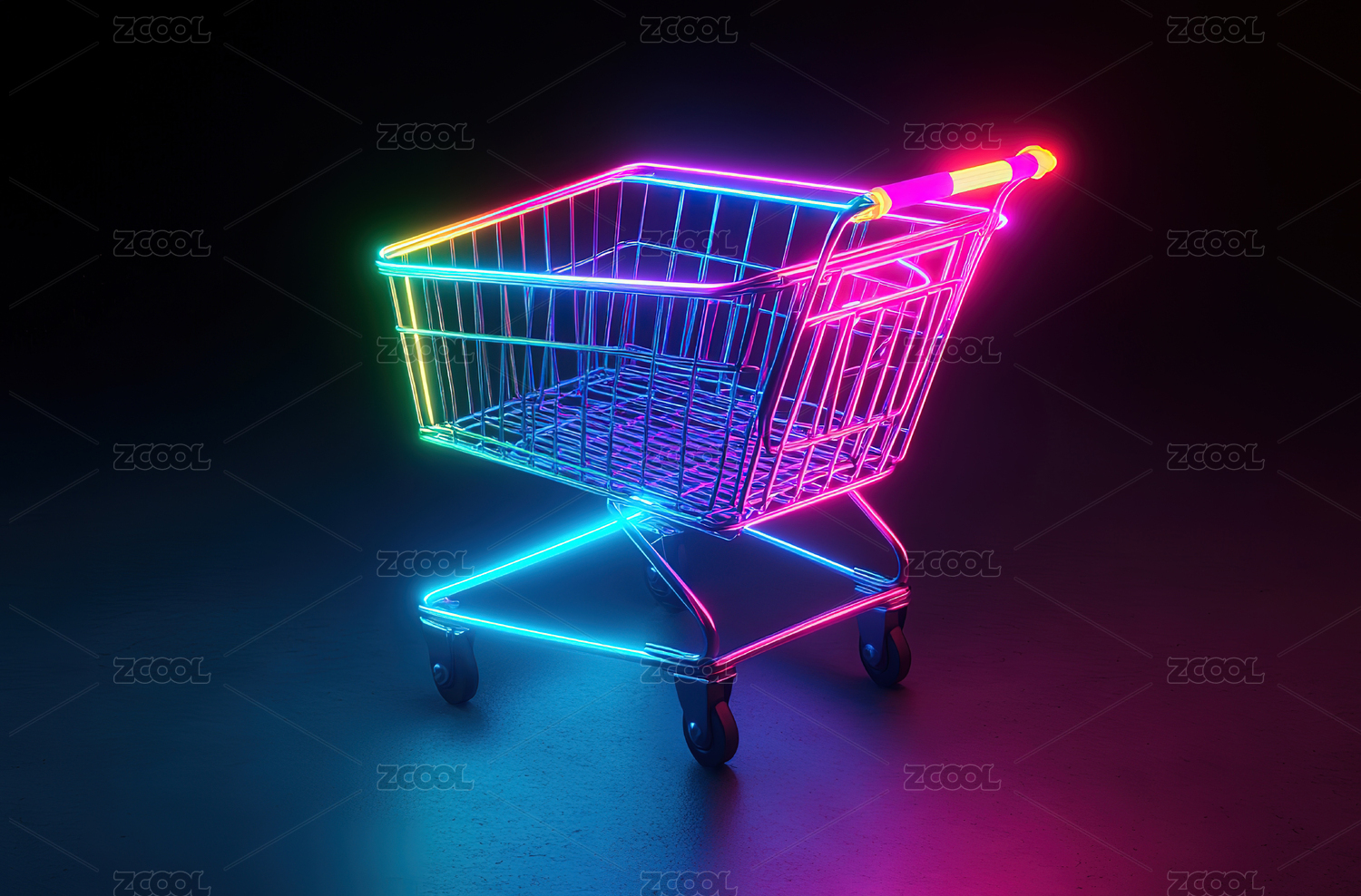 霓虹灯购物车未来科技感