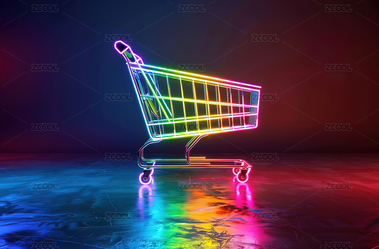 霓虹购物车未来科技感场景