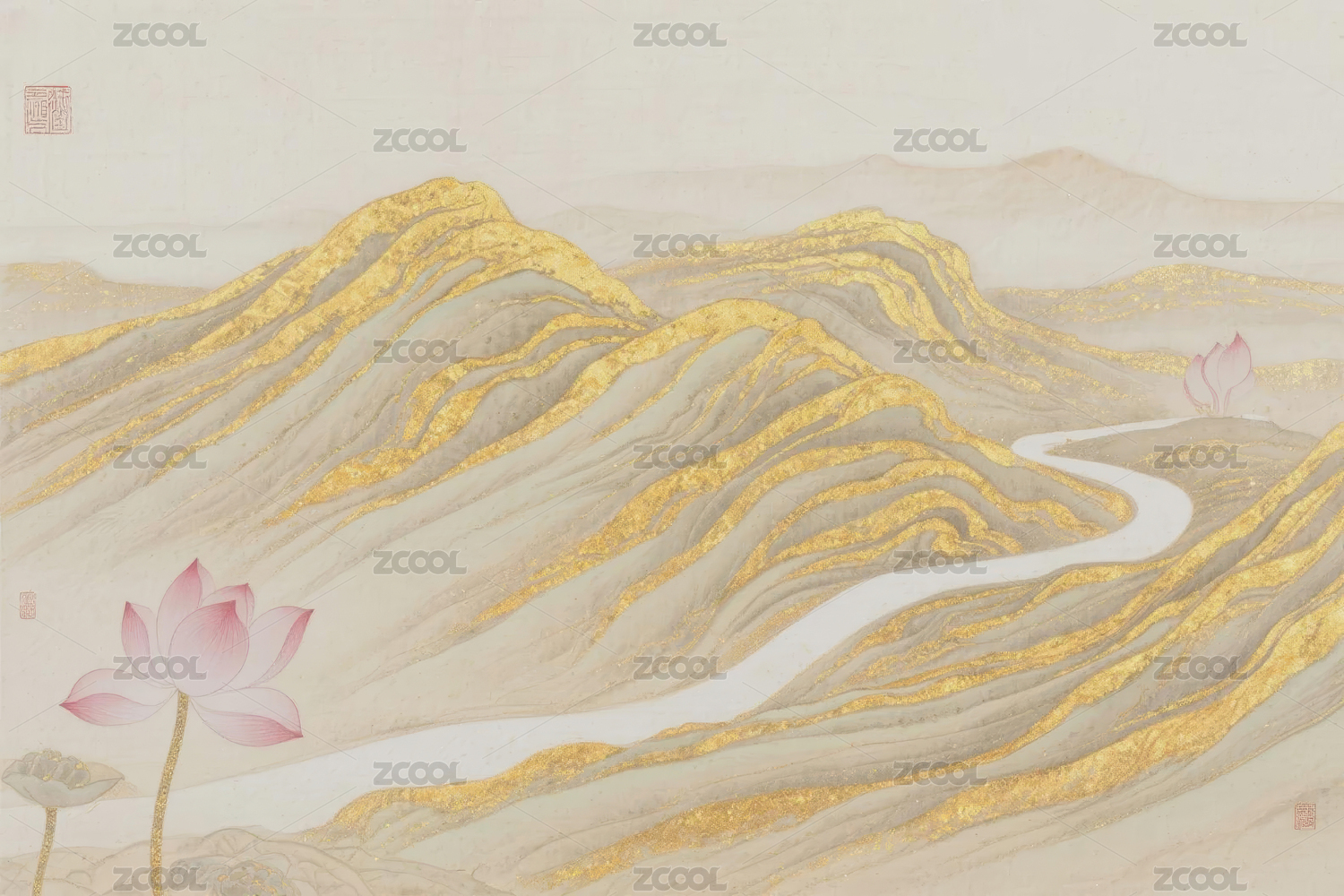 金色山峦与莲花
