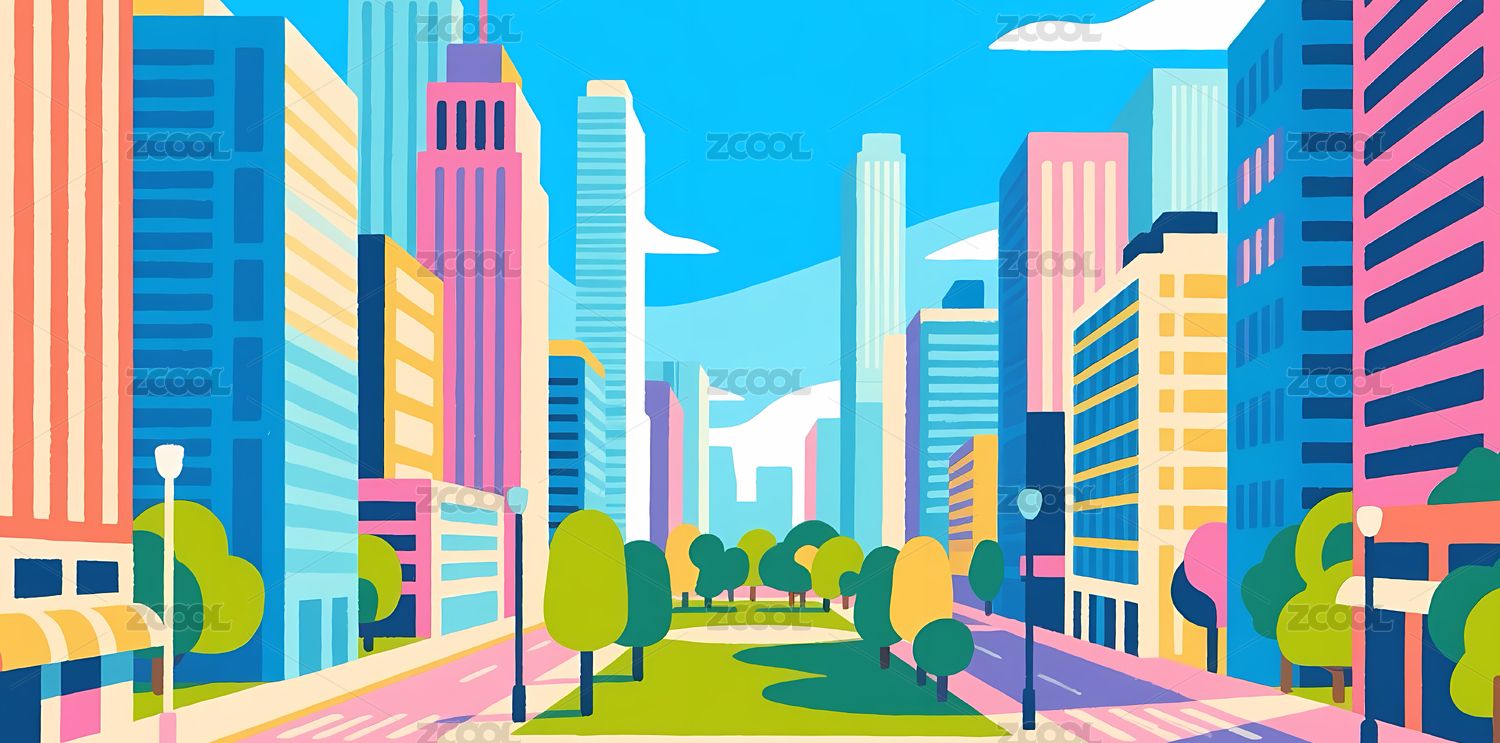 渐变,插画,城市,建筑,都市,背景,壁纸