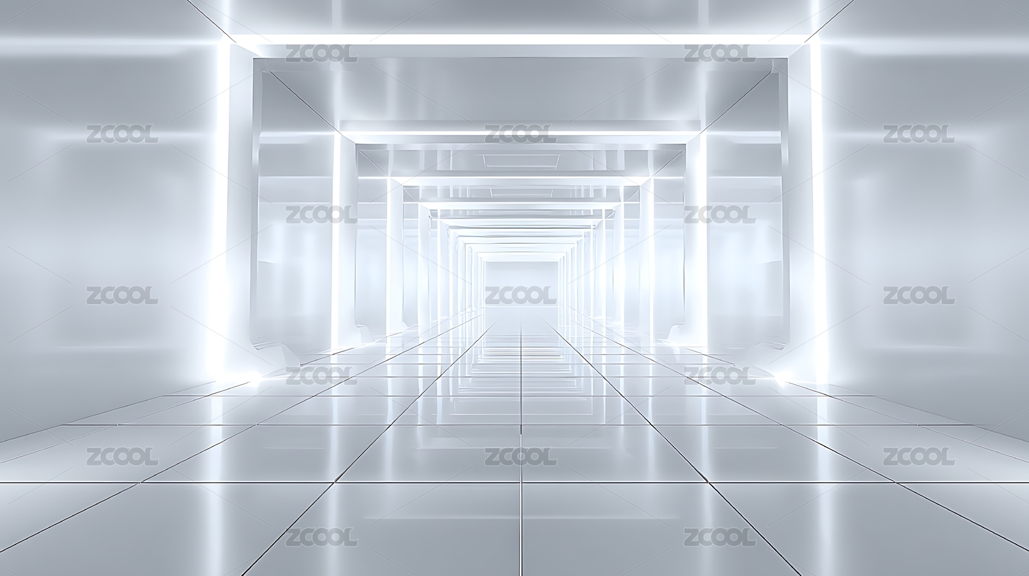 3D渲染科幻延伸蓝色未来科技感空间场景