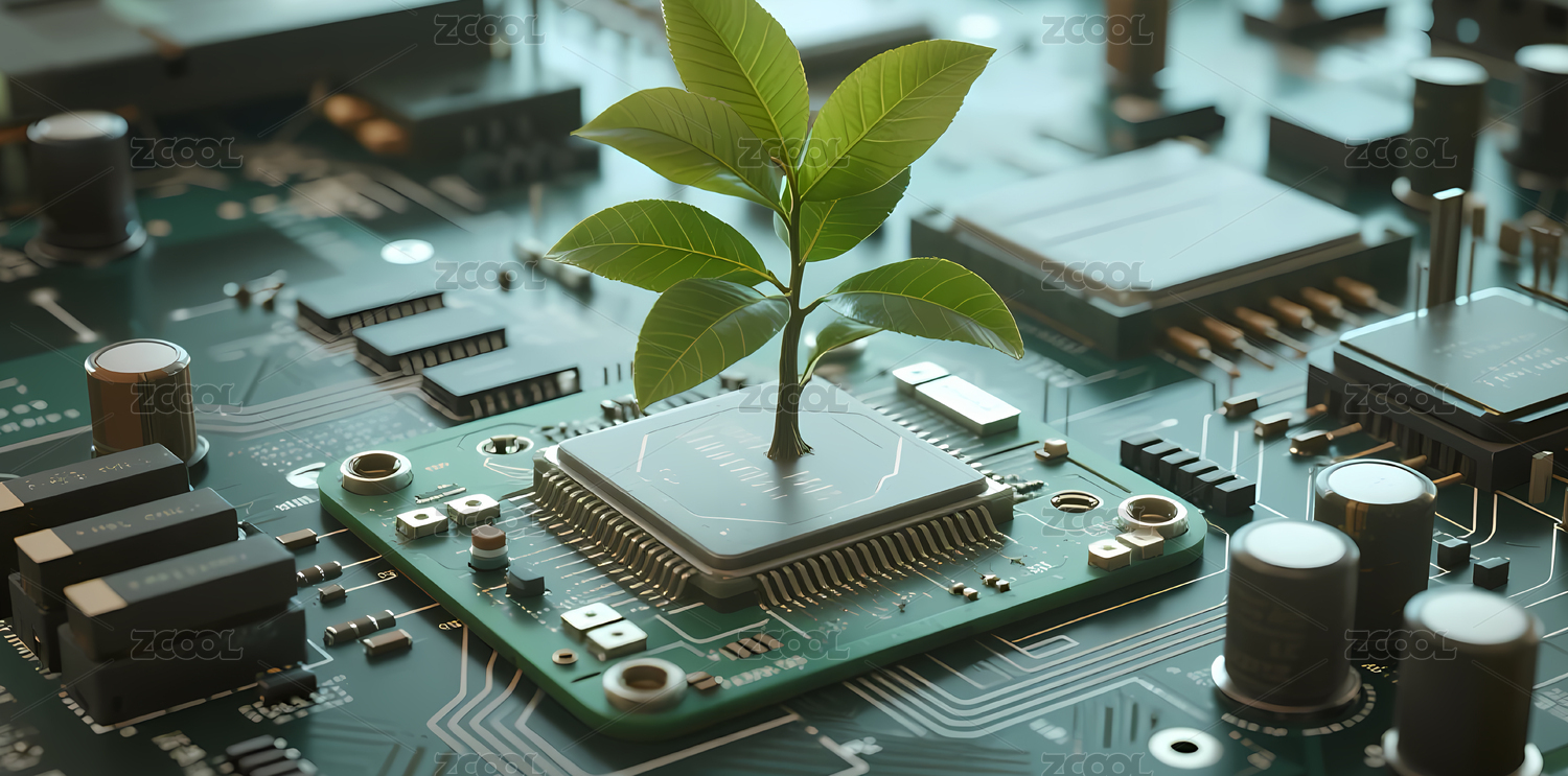 自然,蓝色,电路板,嫩芽,发光,线条,元件,科技,融合,植物