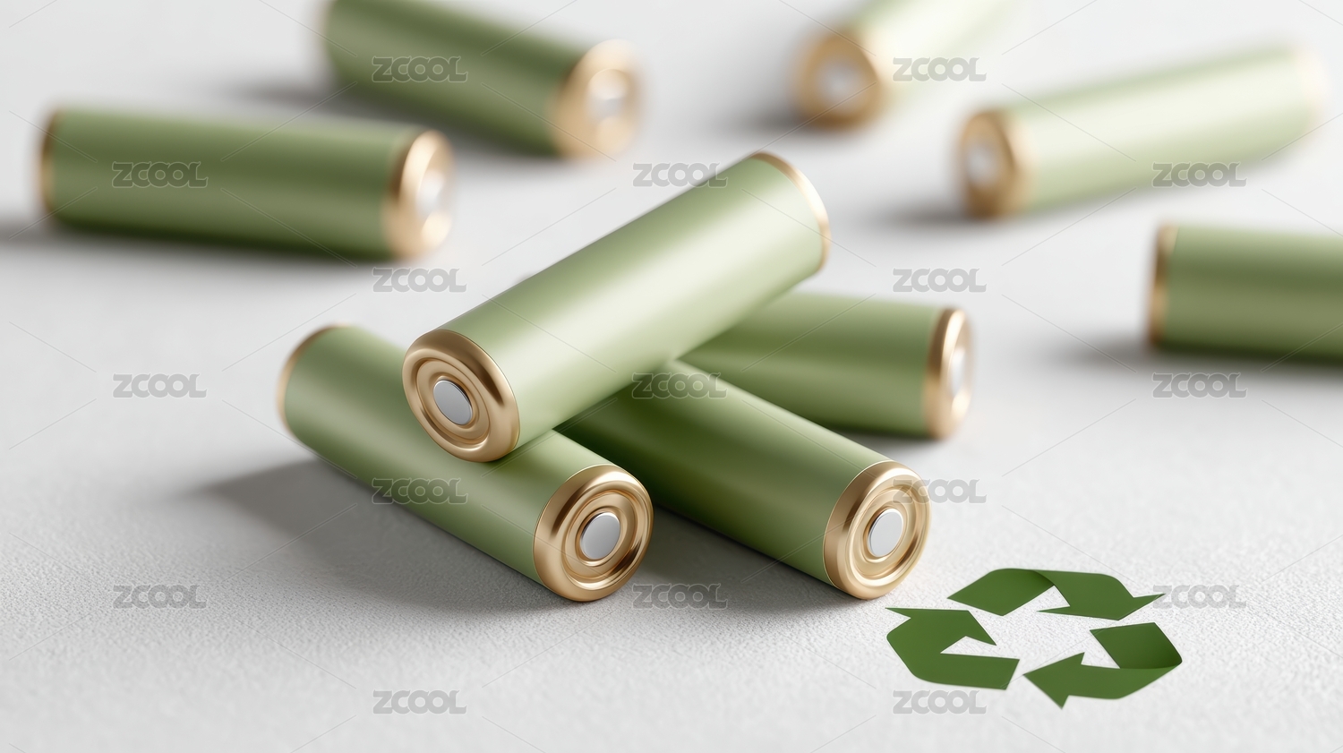 白色背景上散落着可循环电池