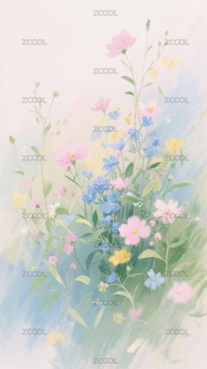 蓝色,自然,艺术,美丽,春天,背景,插画,花卉,黄色,植物