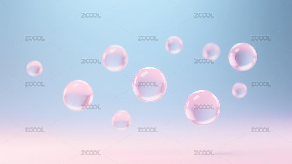 粉色肥皂泡与浅蓝渐变