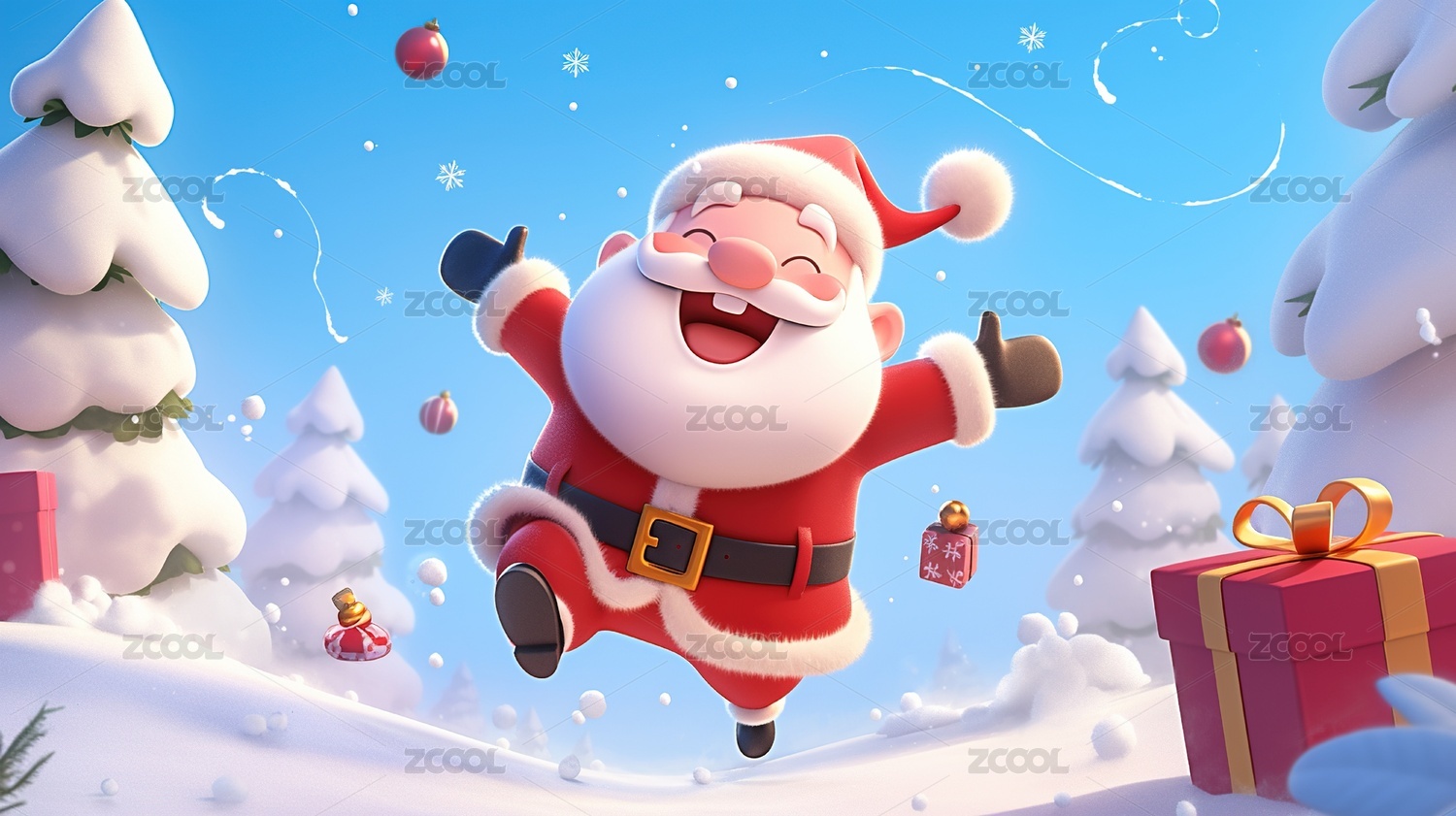 3D唯美的圣诞场景圣诞树和圣诞老人