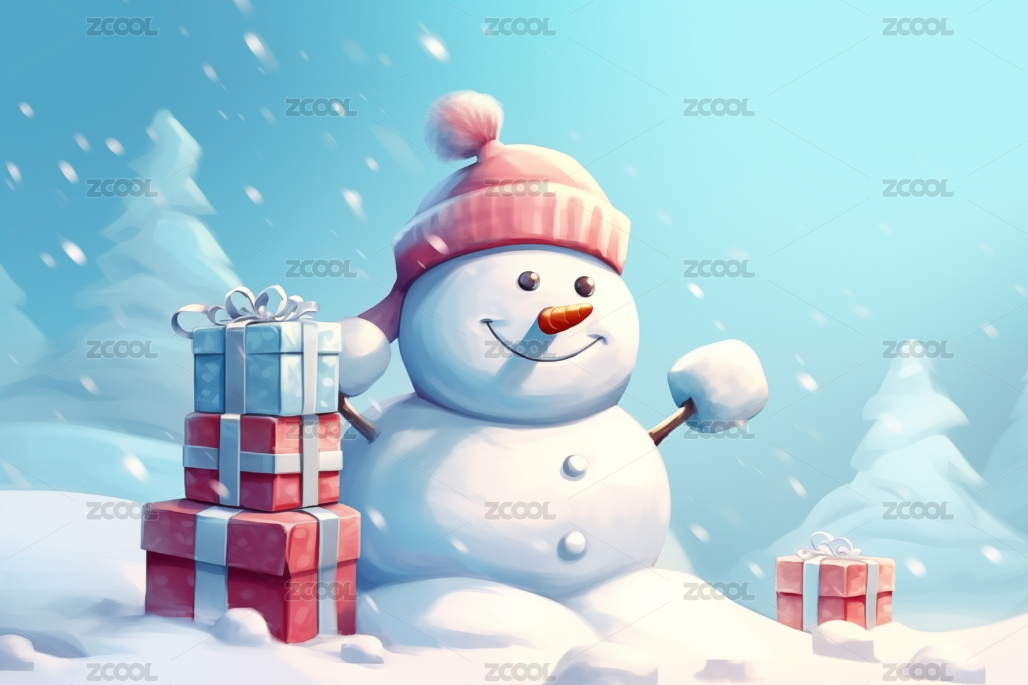 灯光,装饰,蓝色,梦幻,夜晚,树,温馨,可爱,卡通,雪人