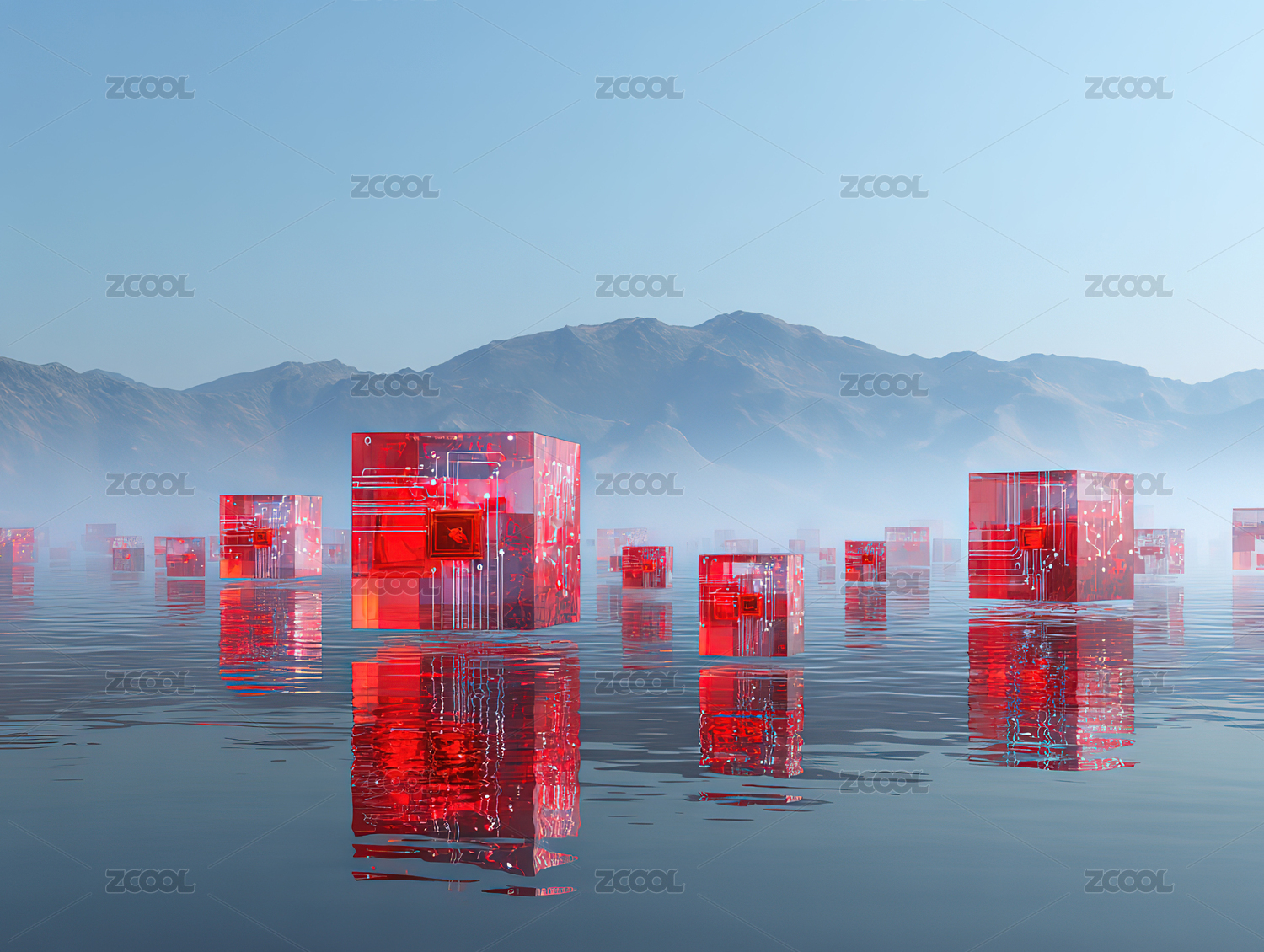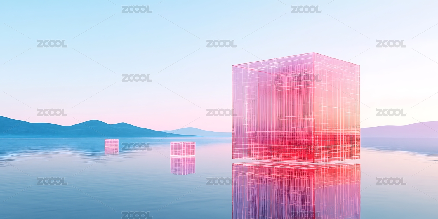 蓝色,几何,天空,现代,设计,抽象,视觉,艺术,立方体,湖面