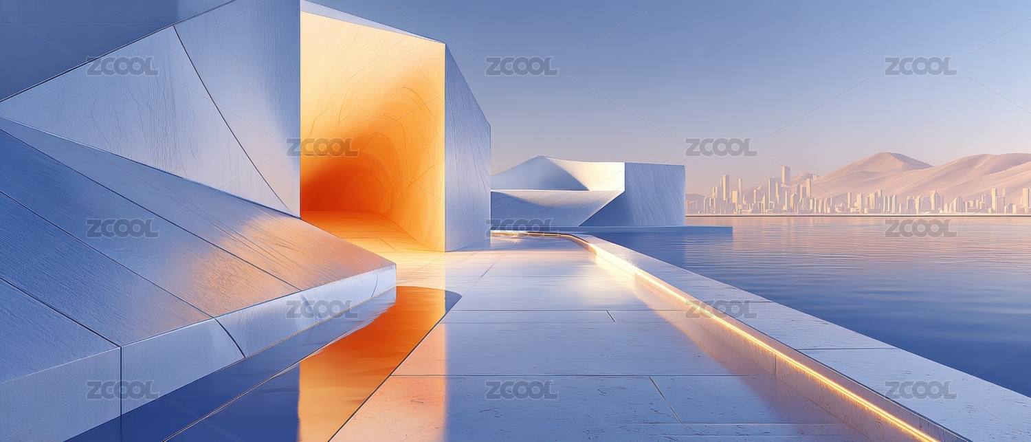未来城市景观中的几何建筑与光影艺术