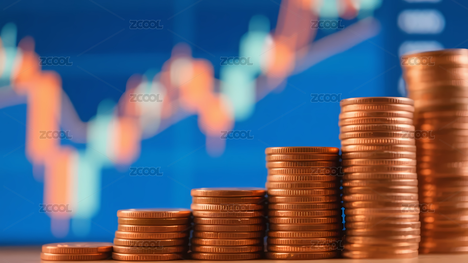 蓝色,金色,模糊,阶梯,图表,深色,堆叠,财务,硬币,线条