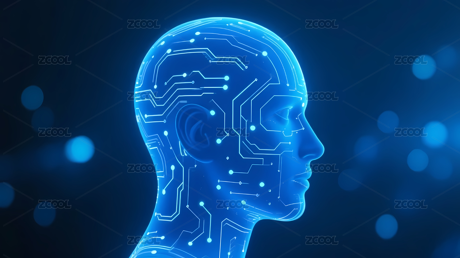 蓝色,电路板,模糊,科技,黑色,剪影,人形,头部,面部,光晕