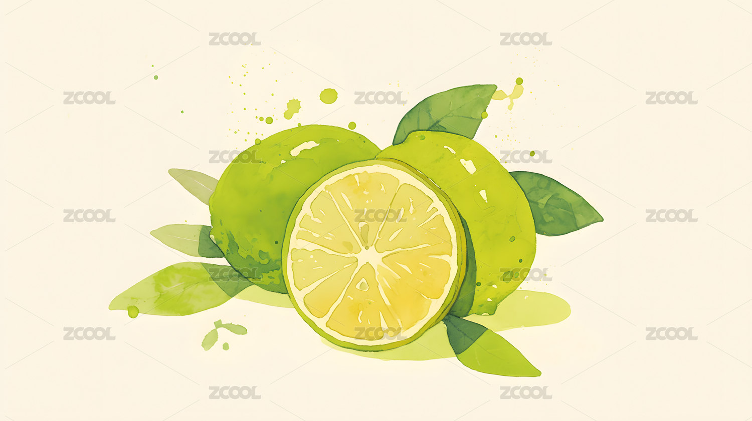 手绘卡通夏日柠檬缤纷水果扁平化插画背景