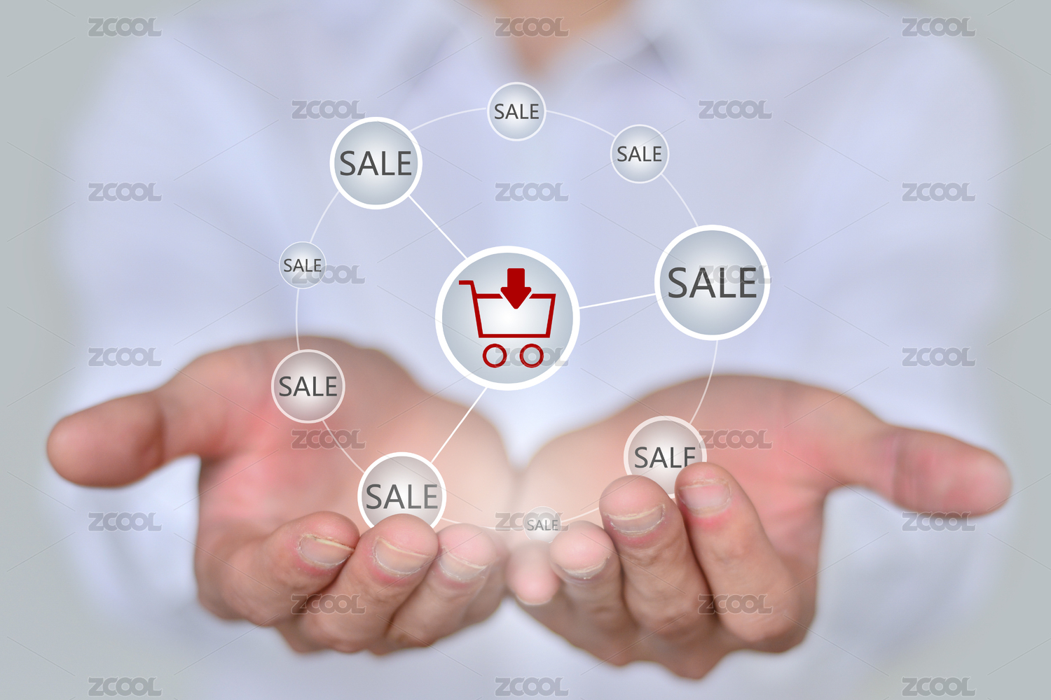 商务人士手触控购物车进行下单下载订单在线移动支付的科技感概念