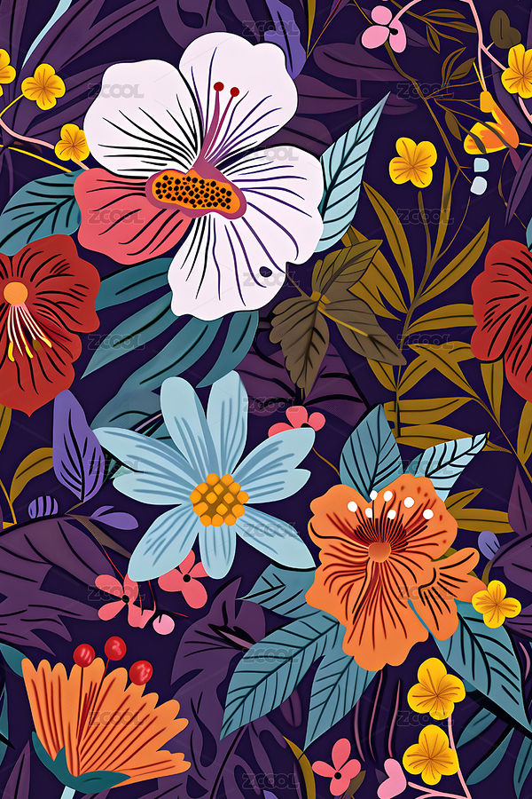 组合型花卉,AI,抽象,小清新,植物,花朵,四方连续图