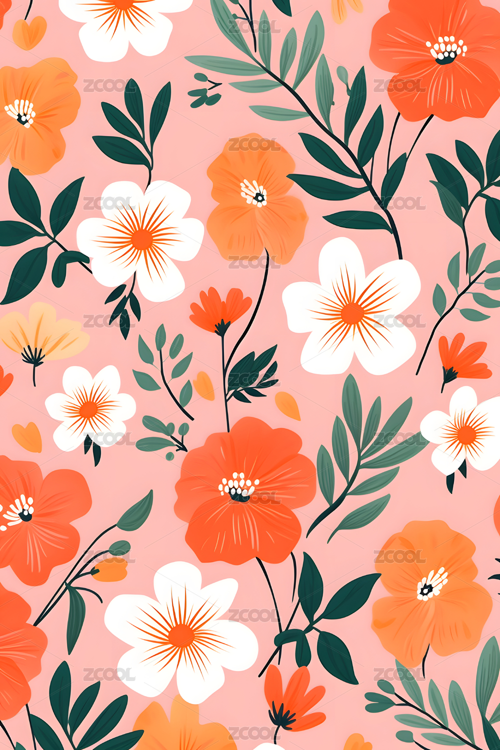 四方连续图数码花卉