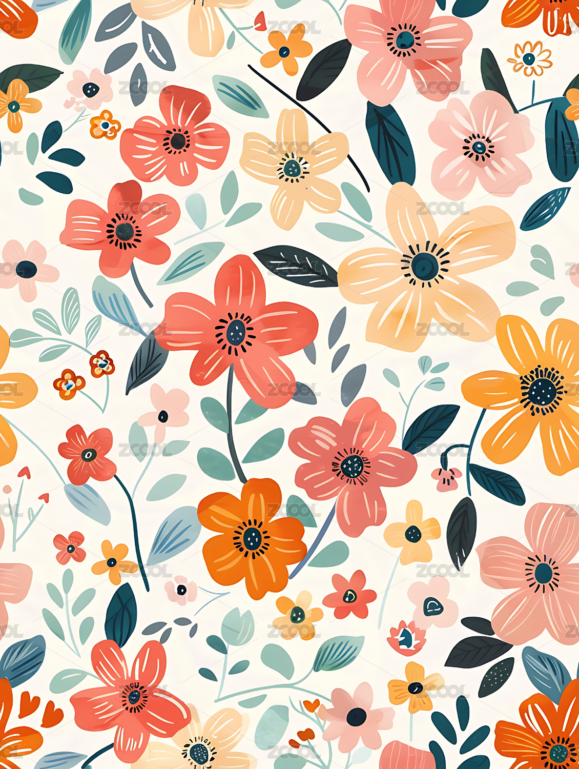 组合型花卉,AI,抽象,小清新,植物,花朵,四方连续图