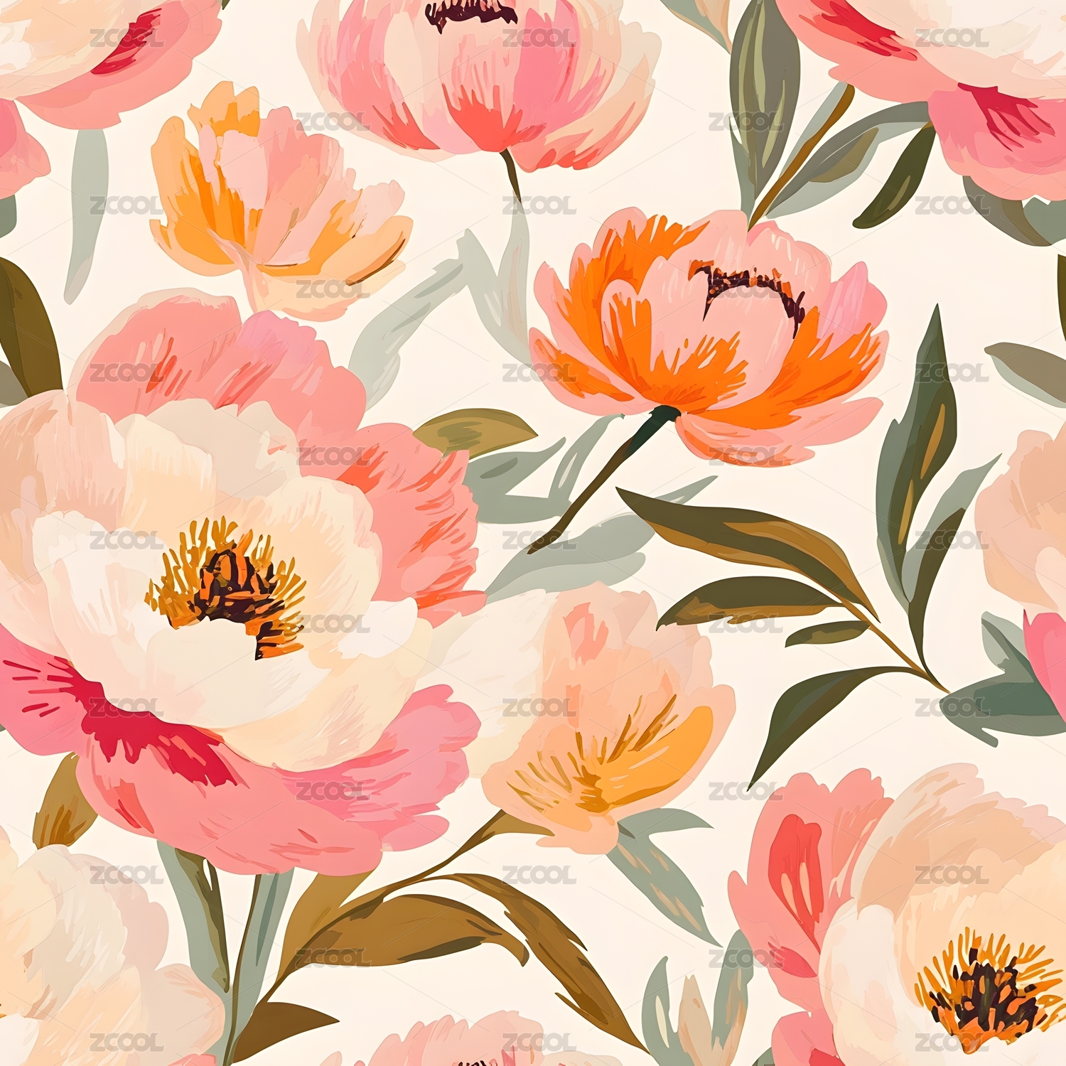 水墨牡丹盛开花卉中国风复古布料底纹图案