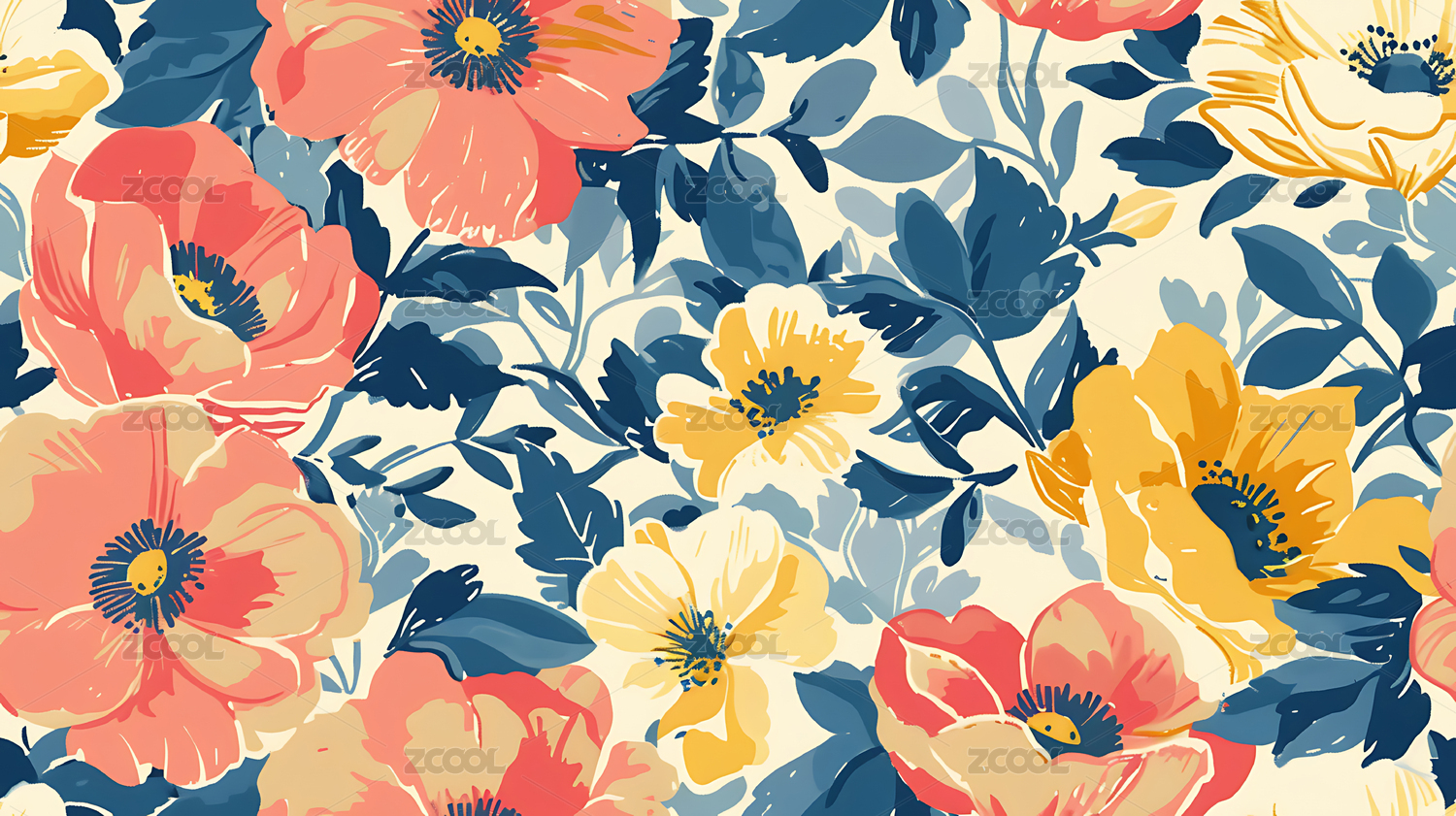 组合型花卉,AI,3D,抽象,花朵,四方连续图