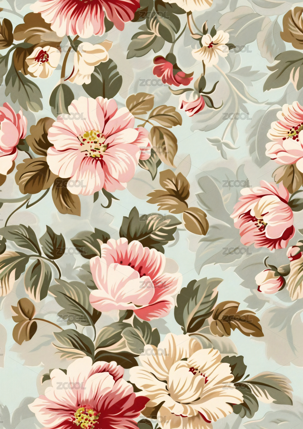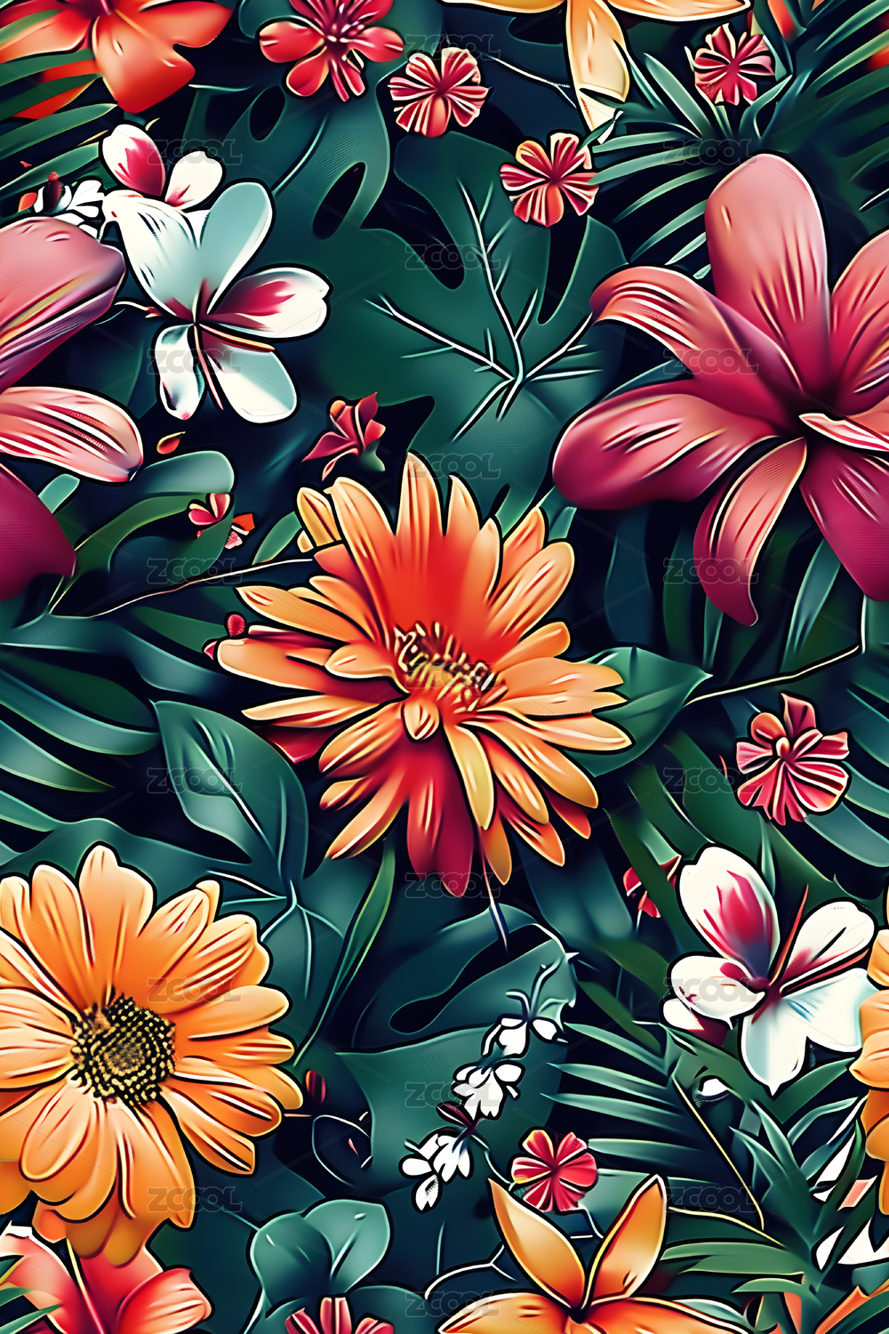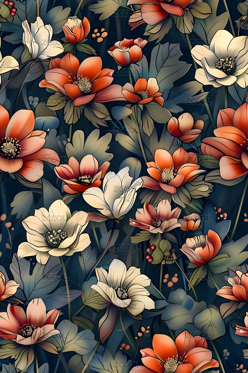 四方连续图数码花卉