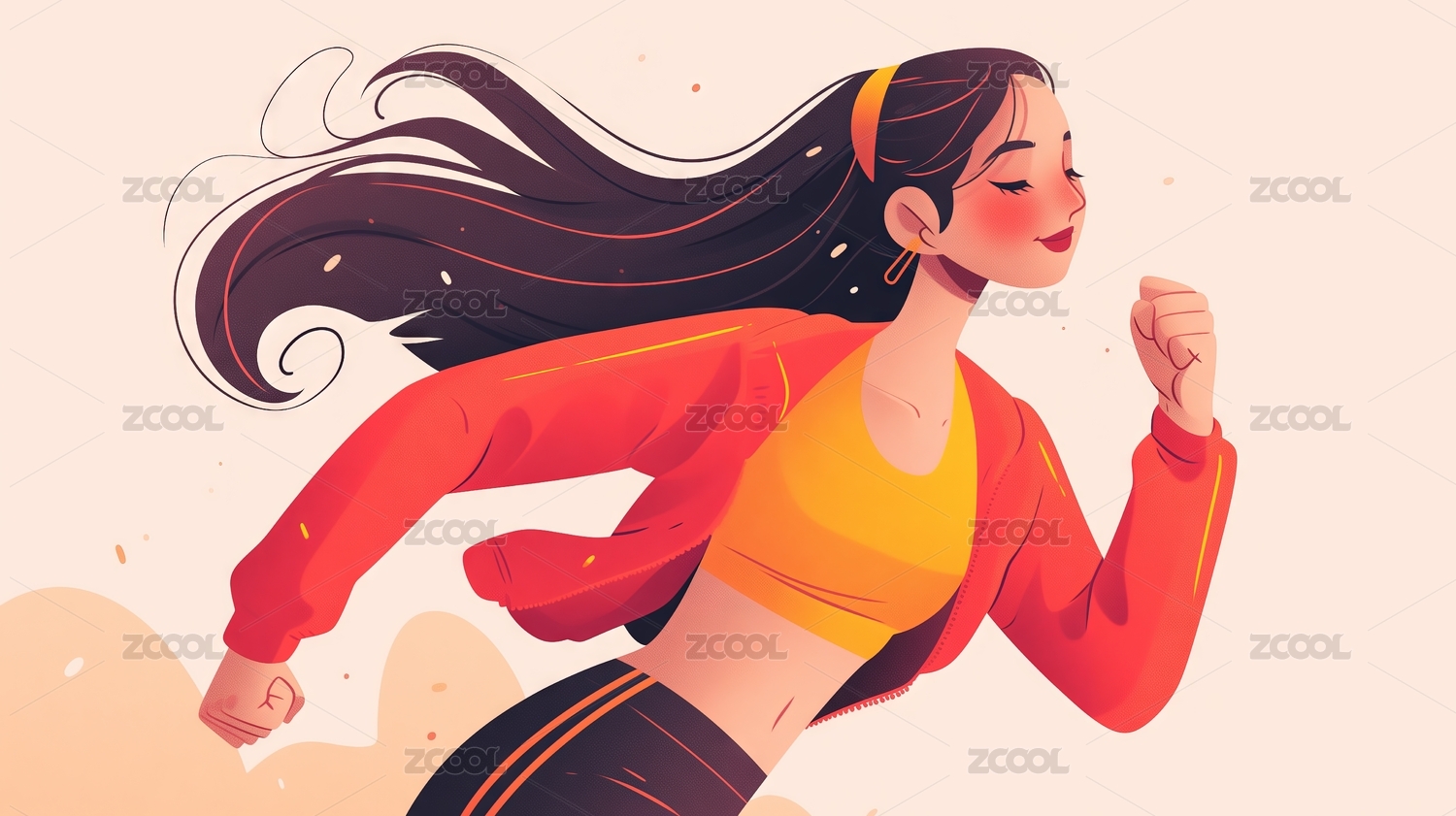 女性跑步运动插画