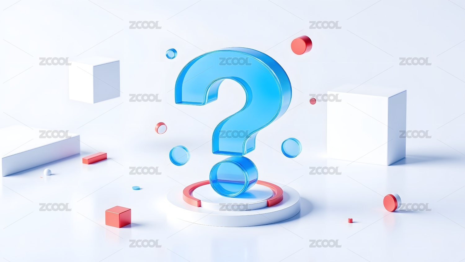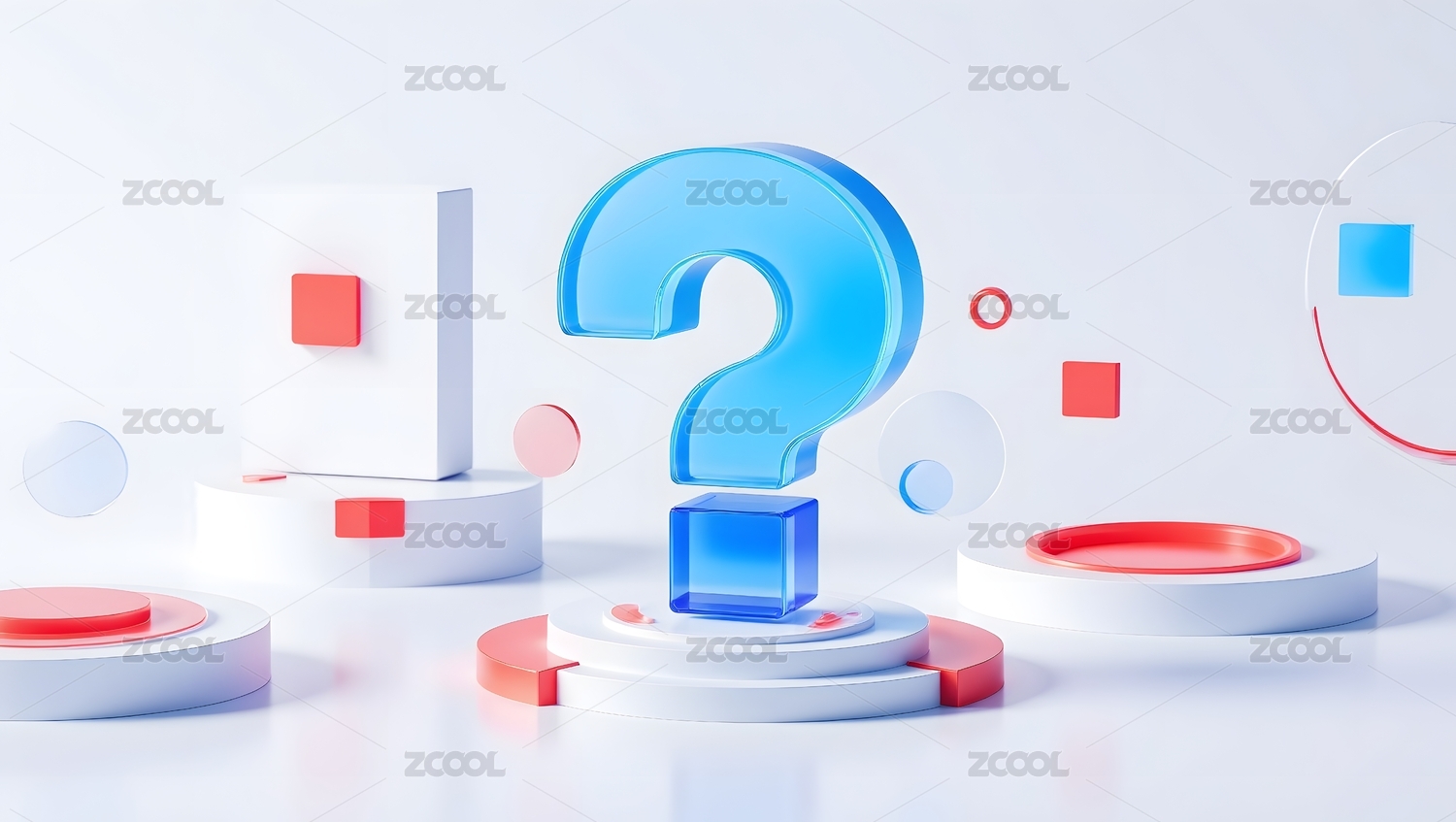 蓝色问号与几何图形组合