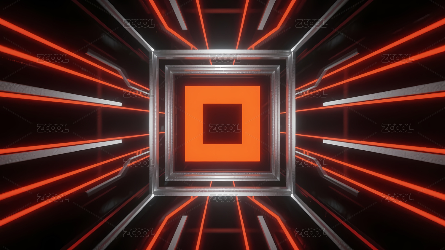 橙蓝方形几何隧道
