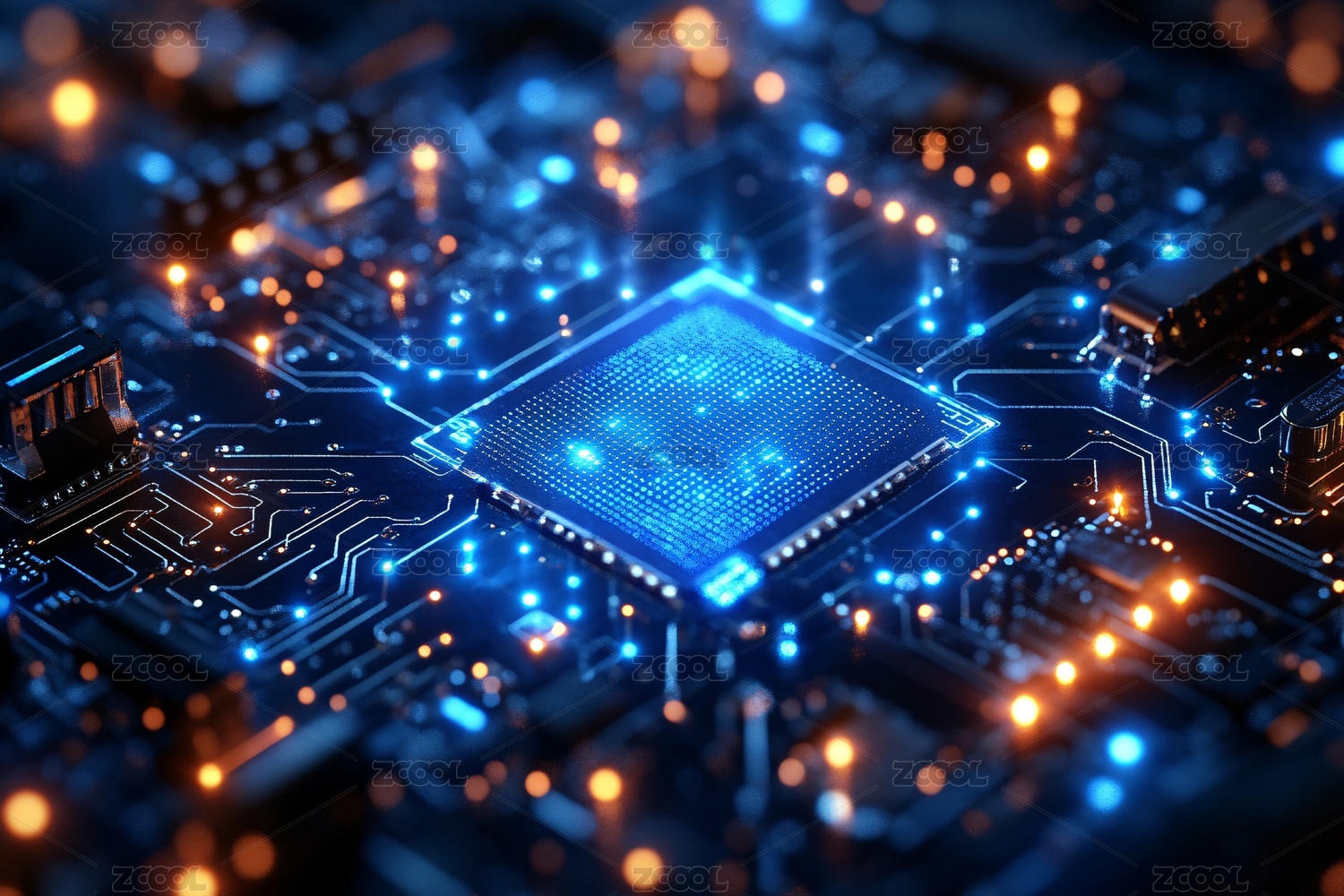 芯片,电路板,科技,插画,矢量,发光,元素,电路,蓝色,橙色