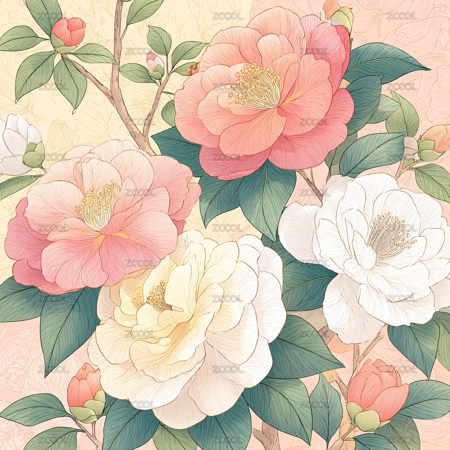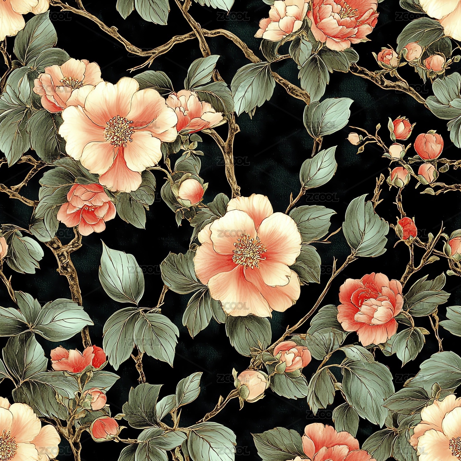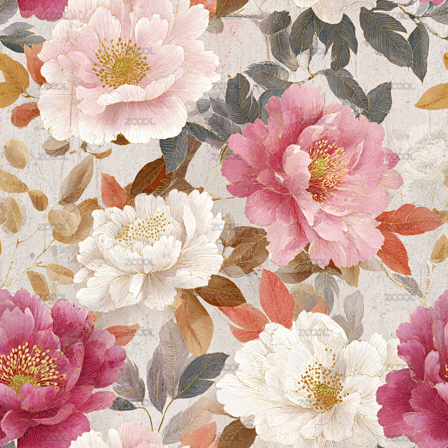 花卉,叶子,图案,背景,插画,矢量,复古,粉色,白色,棕色