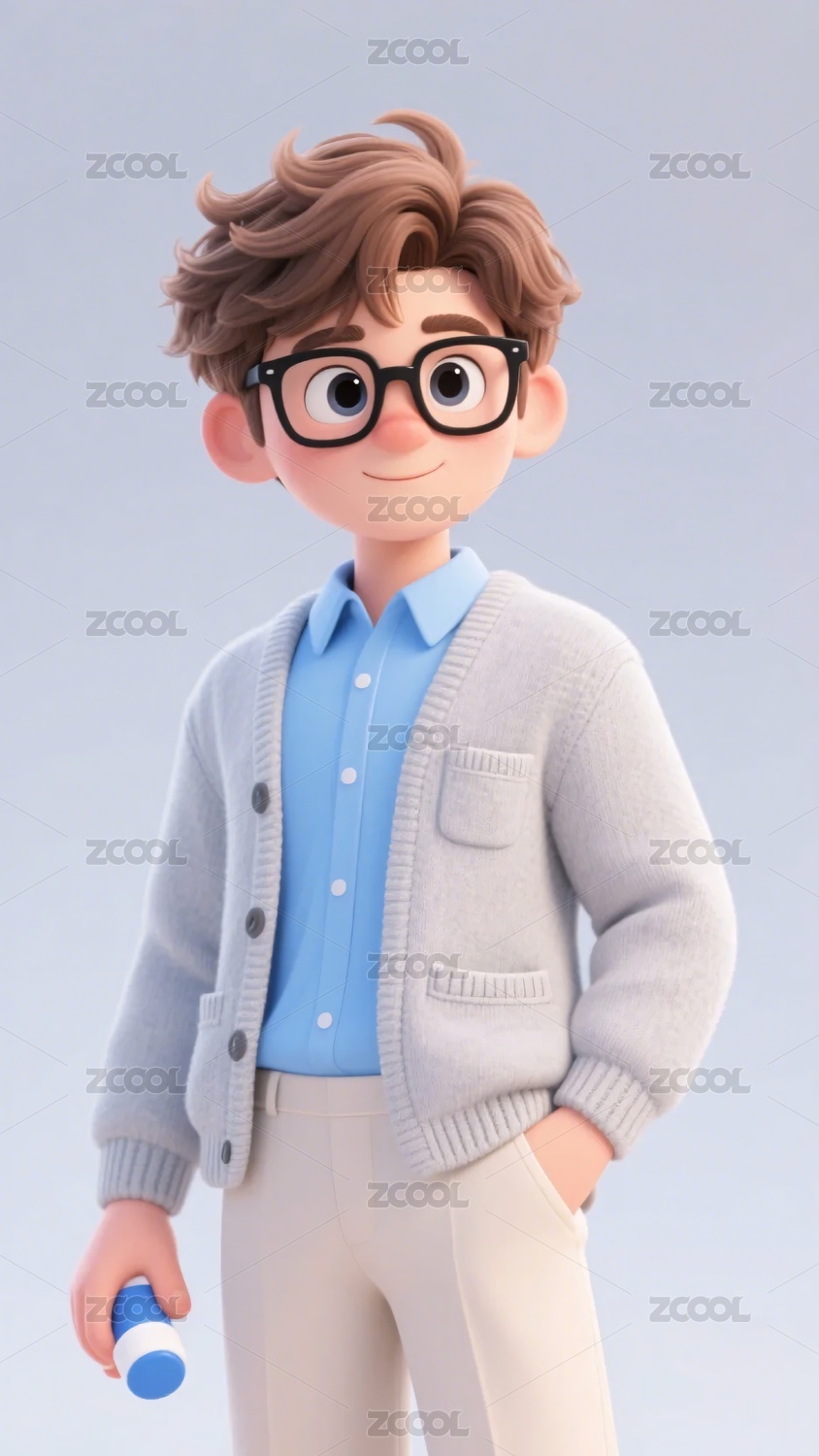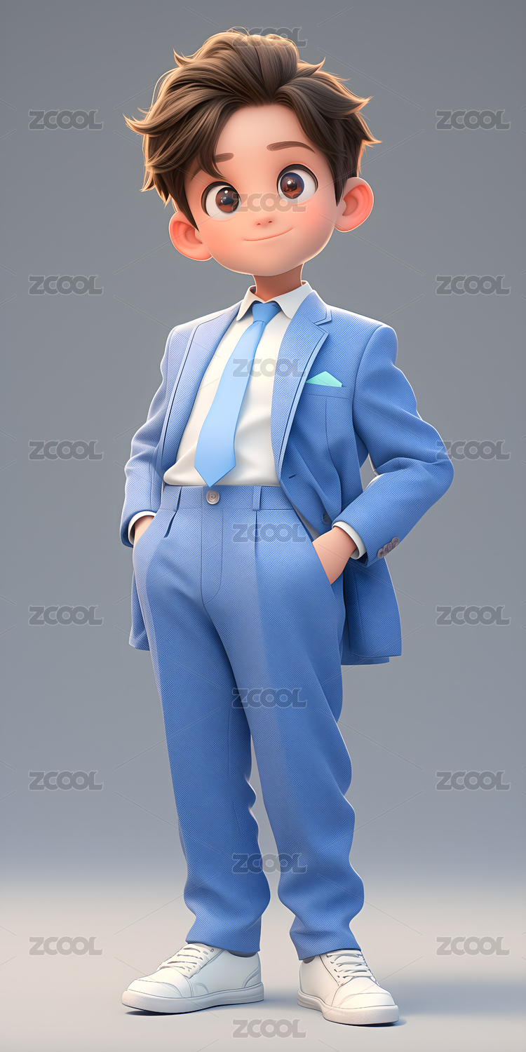 小男孩,卡通,人物,插画,蓝色外套,棕色裤子,矢量,形象,角色,模板