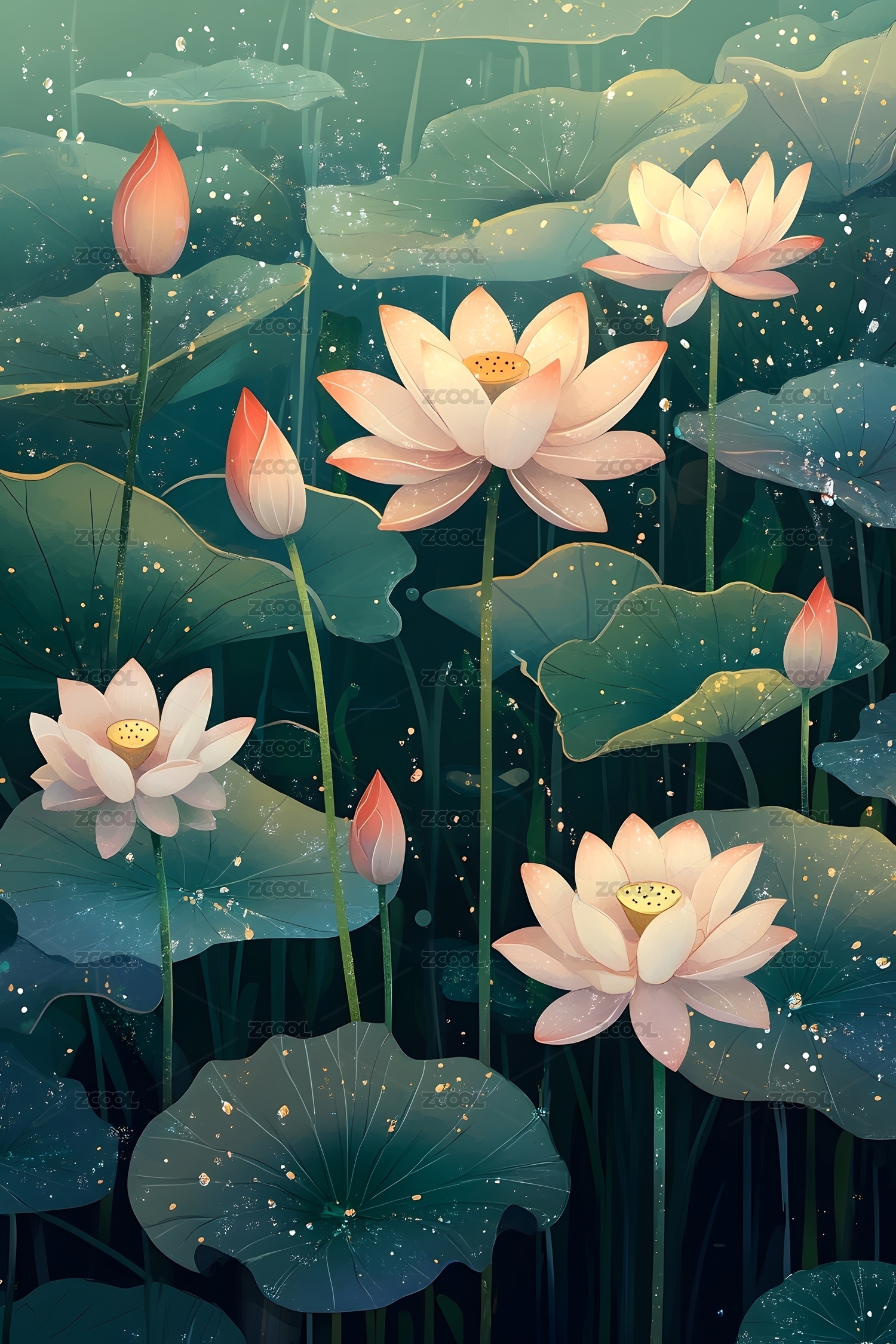 荷花,蜻蜓,荷叶,插画,矢量,自然,花卉,植物,水景,背景
