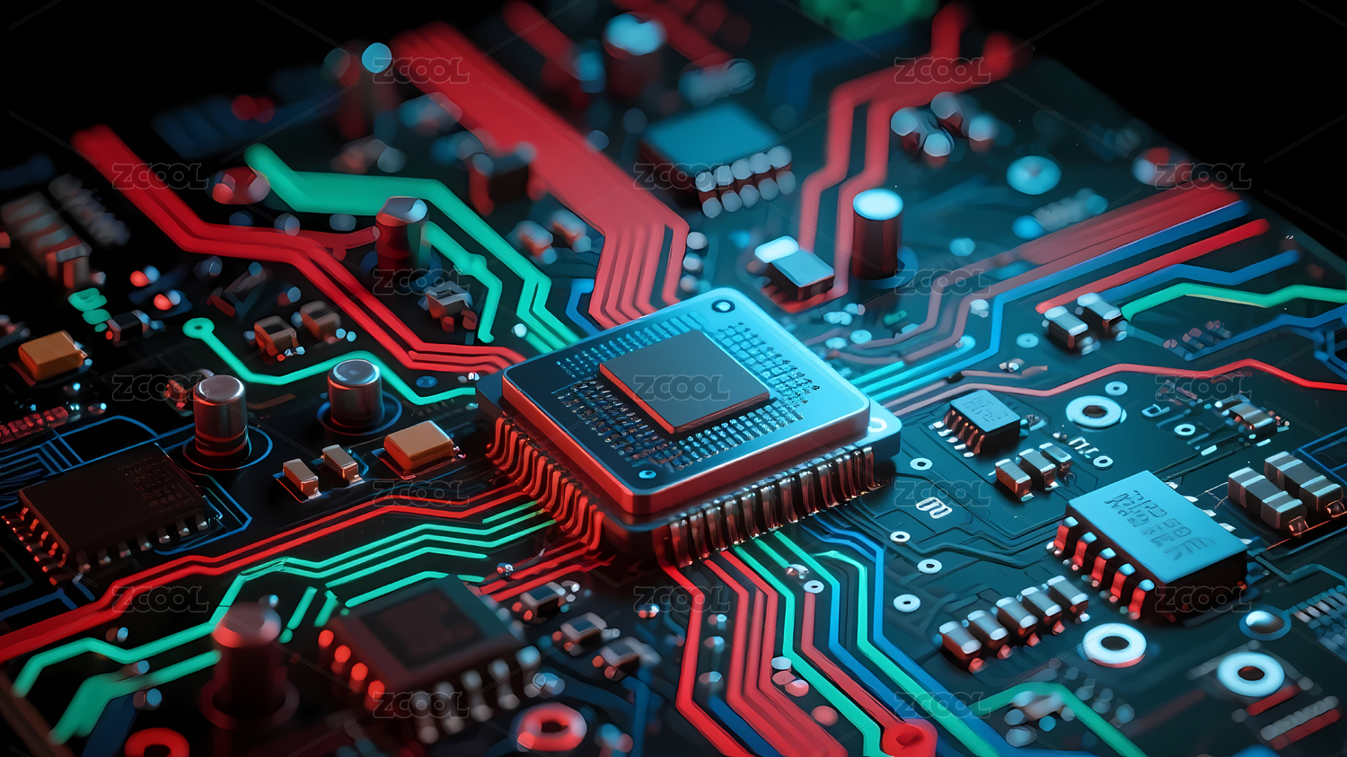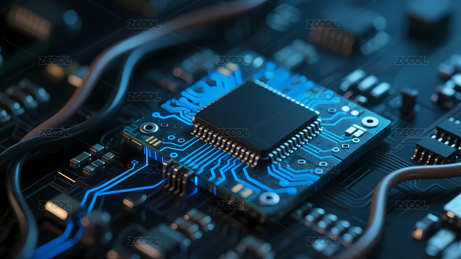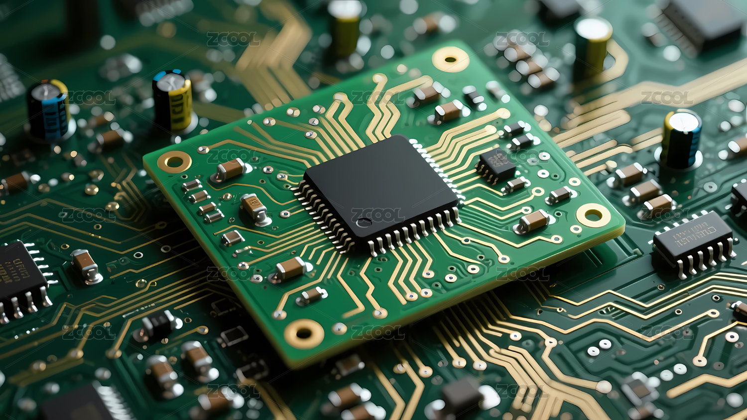 绿色,模糊,主体,电路板,电子元件,连接线,科技,未来,细节,结构