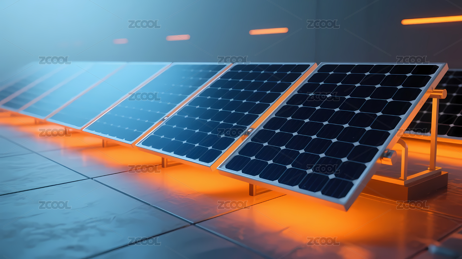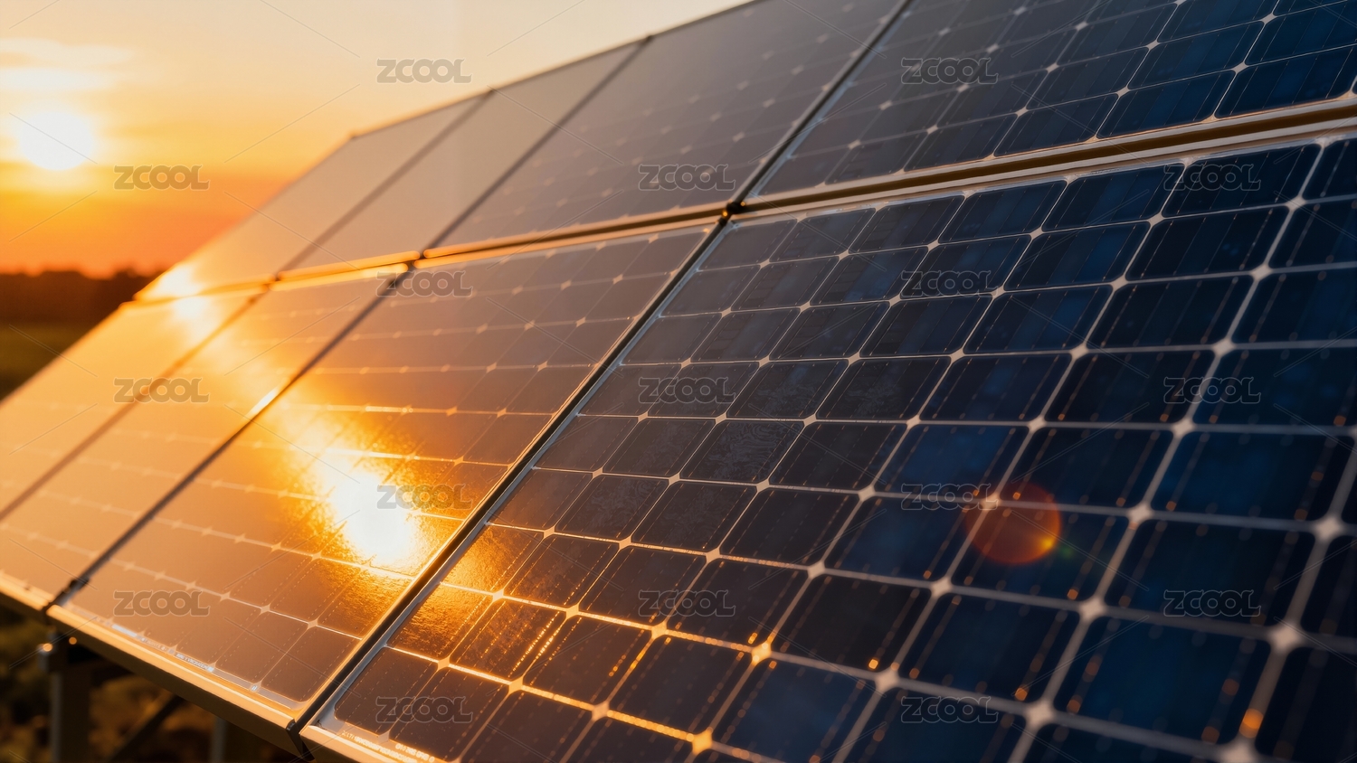 亚洲夏季日落时太阳能电池板和环境自然风光