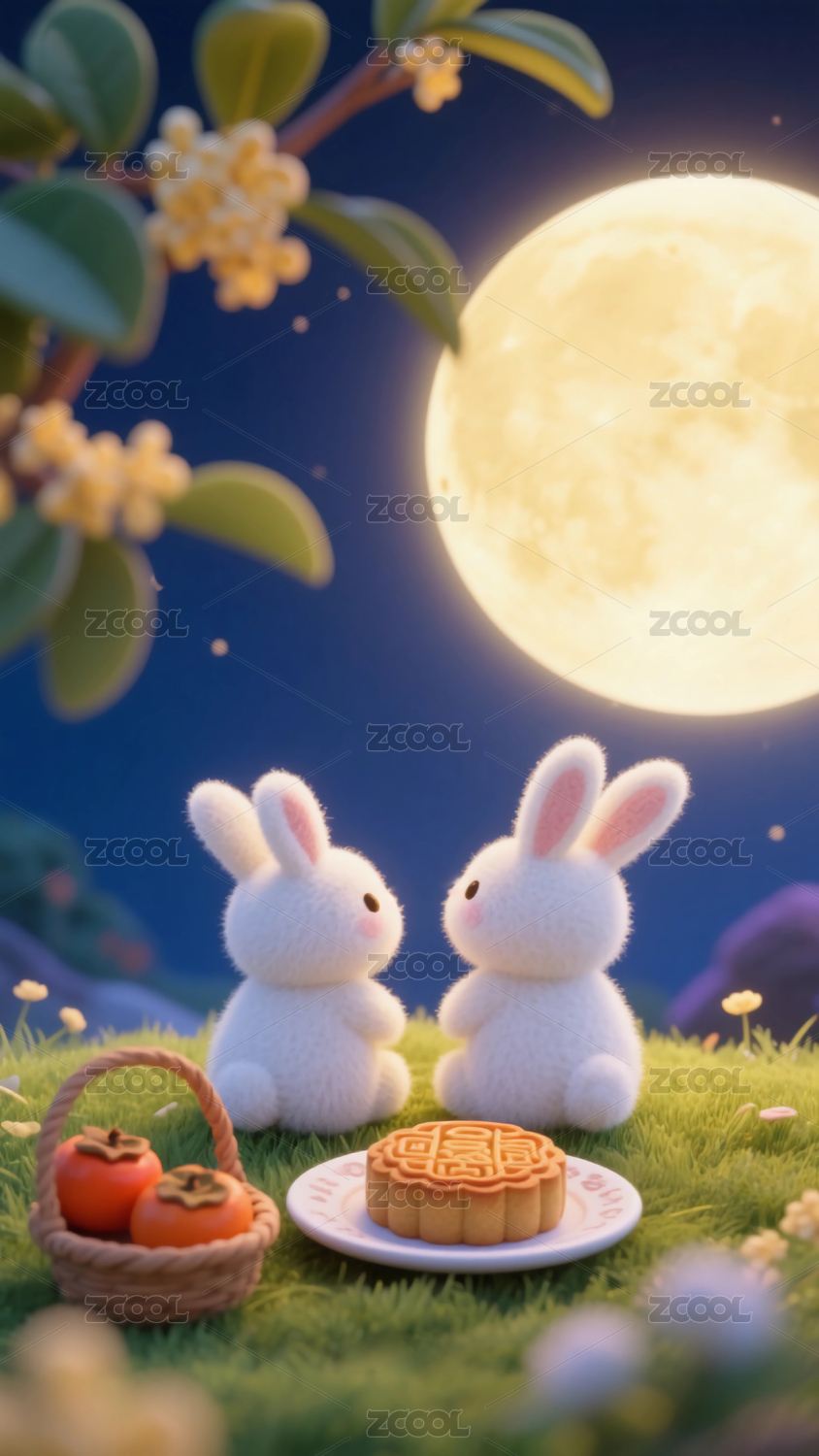 云上的桂花树下两只兔子弹琵琶吃月饼