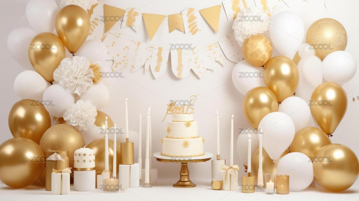 金色,奢华,花朵,白色,喜庆,生日,生日快乐,生日蛋糕,生日派对,派对装饰