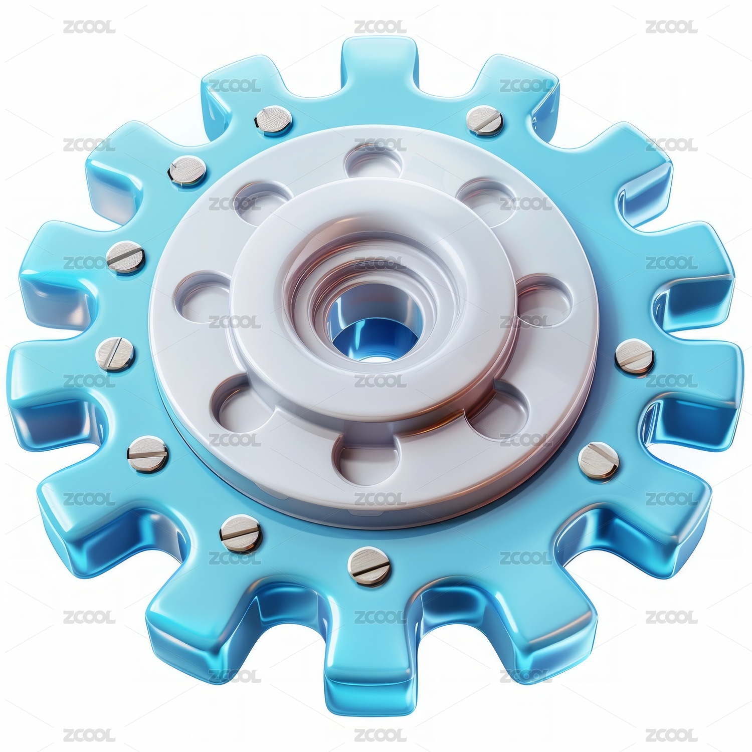 一个蓝色的3D卡通齿轮